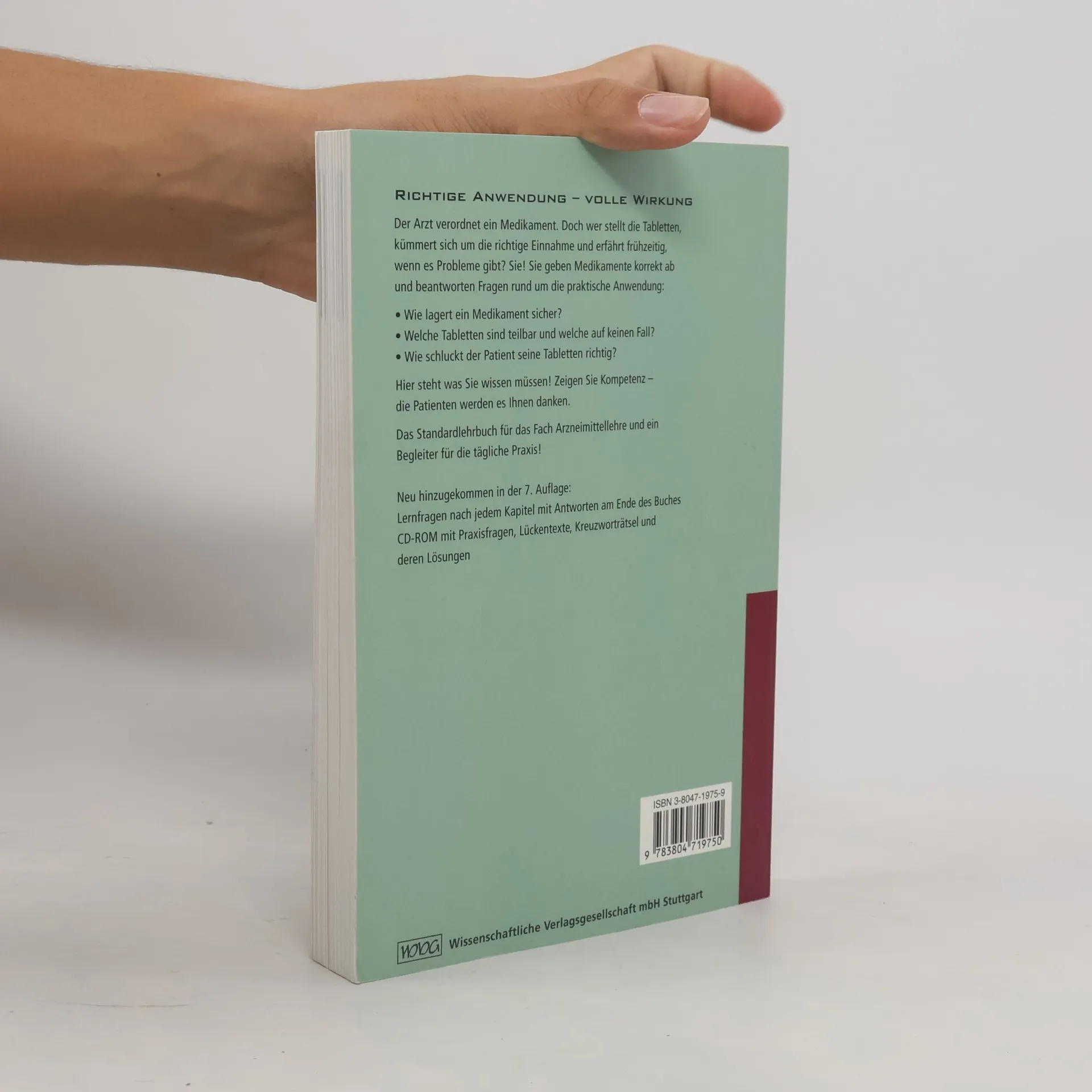 Richtige Anwendung - volle Wirkung Der Arzt verordnet ein Medikament. Doch wer stellt die Tabletten, kümmert sich um die richtige Einnahme und erfährt frühzeitig, wenn es Probleme gibt? Sie! Sie geben Medikamente korrekt ab und beantworten Fragen rund um die praktische Anwendung: - Wie lagert ein Medikament sicher? - Welche Tabletten sind teilbar und welche auf keinen Fall? - Wie schluckt der Patient seine Tabletten richtig? Hier steht was Sie wissen müssen! Zeigen Sie Kompetenz - die Patienten werden es Ihnen danken. Das Standardlehrbuch für das Fach Arzneimittellehre und ein Begleiter für die tägliche Praxis! Der Inhalt der 7. Auflage ist völlig neu bearbeitet, aktualisiert, didaktisch noch besser strukturiert.