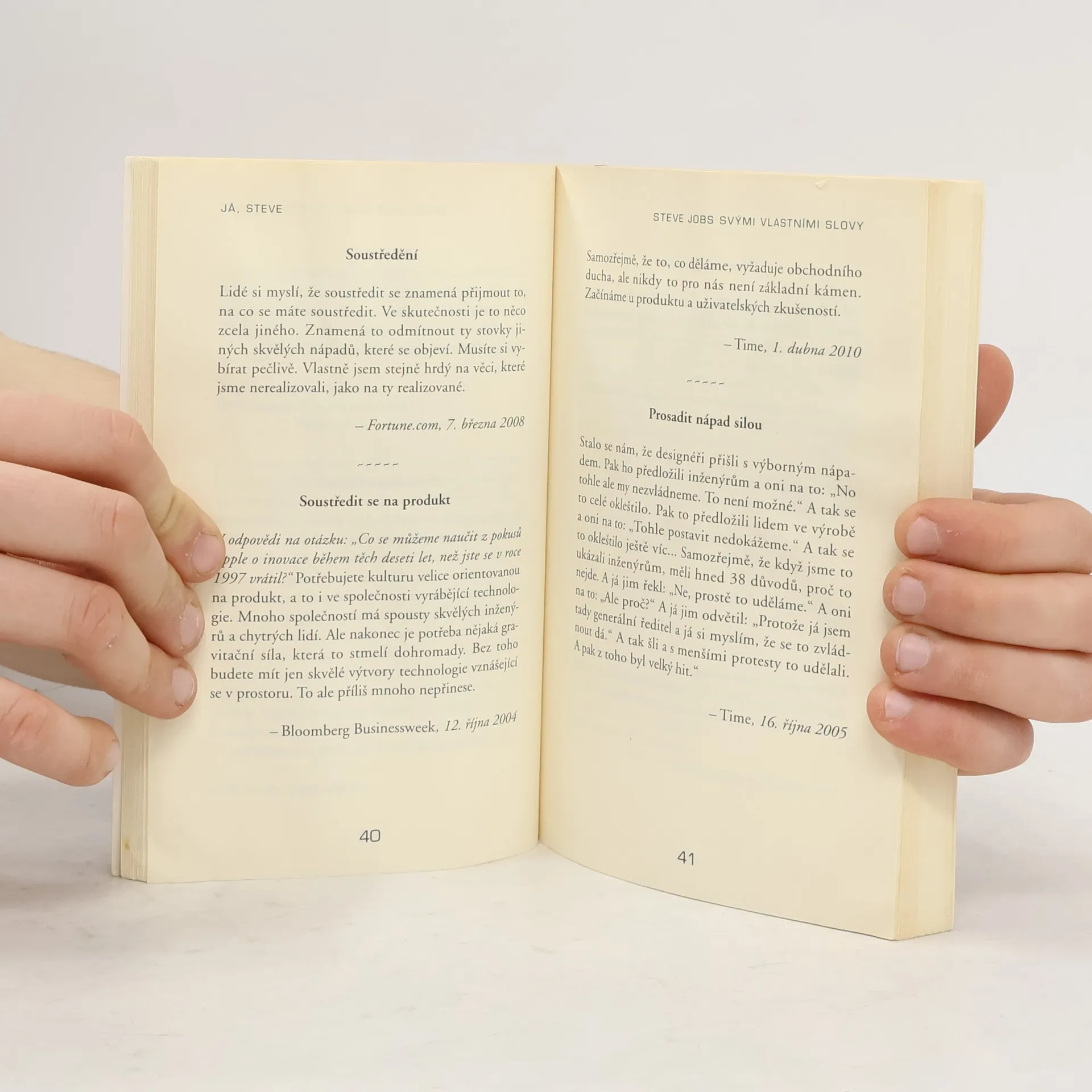 Steve Jobs vlastními slovy. Kniha Já, Steve zachycuje velkého vizionáře a podnikatelského génia Steva Jobse prostřednictvím jeho vlastních slov - od roku 1976 hovořil o svých názorech na veřejnosti a využíval k tomu všech příležitostí - tiskových prohlášení, setkání pořádaných při příležitosti uvedení na trh nového výrobku, rozhovorů atd. V knize Já, Steve jsou shrnuta pozoruhodná a inspirující prohlášení o tom, jak v dnešní době podnikat, která po sobě zakladatel společnosti Apple zanechal.