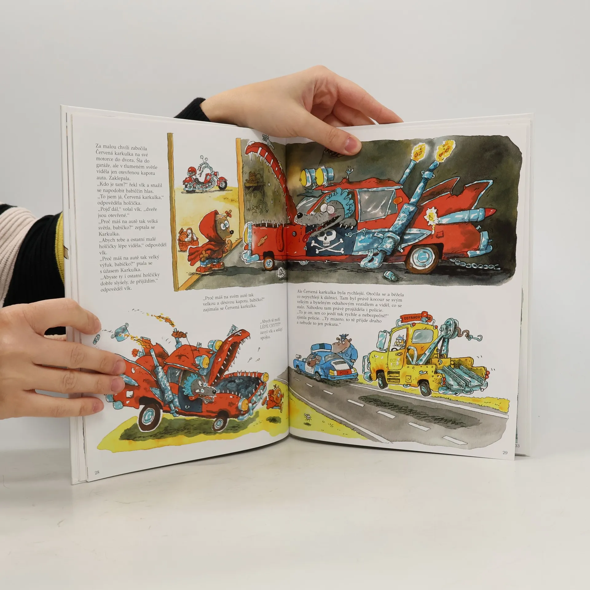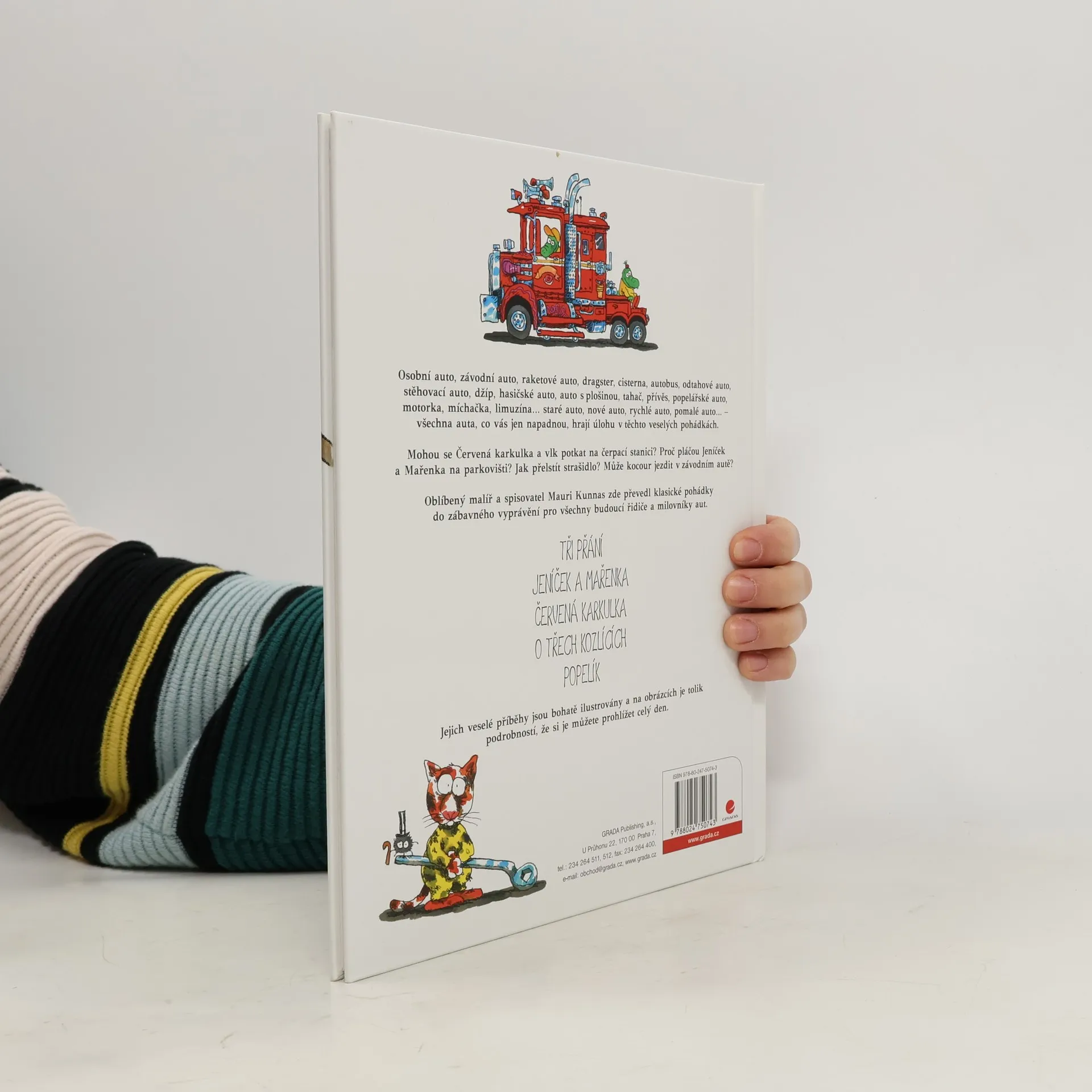 Líbí se vám auta? Pak je tahle knížka, plná barevných obrázků, přesně pro vás. Seznámí te se s různými druhy aut, dozvíte se, jak se jmenují jejich části a pobavíte se řadou veselých příběhů. Víte jaké by byly klasické pohádky, kdyby v nich vystupovala místo lidí zvířata, která jezdí ráda autem? Kozel nebo krokodýl řídí vše od závodního auta až po náklaďáky, cisterny a autobus. Jejich příběhy jsou zábavné a na obrázcích je tolik podrobností, že si je můžete prohlížet celý den.