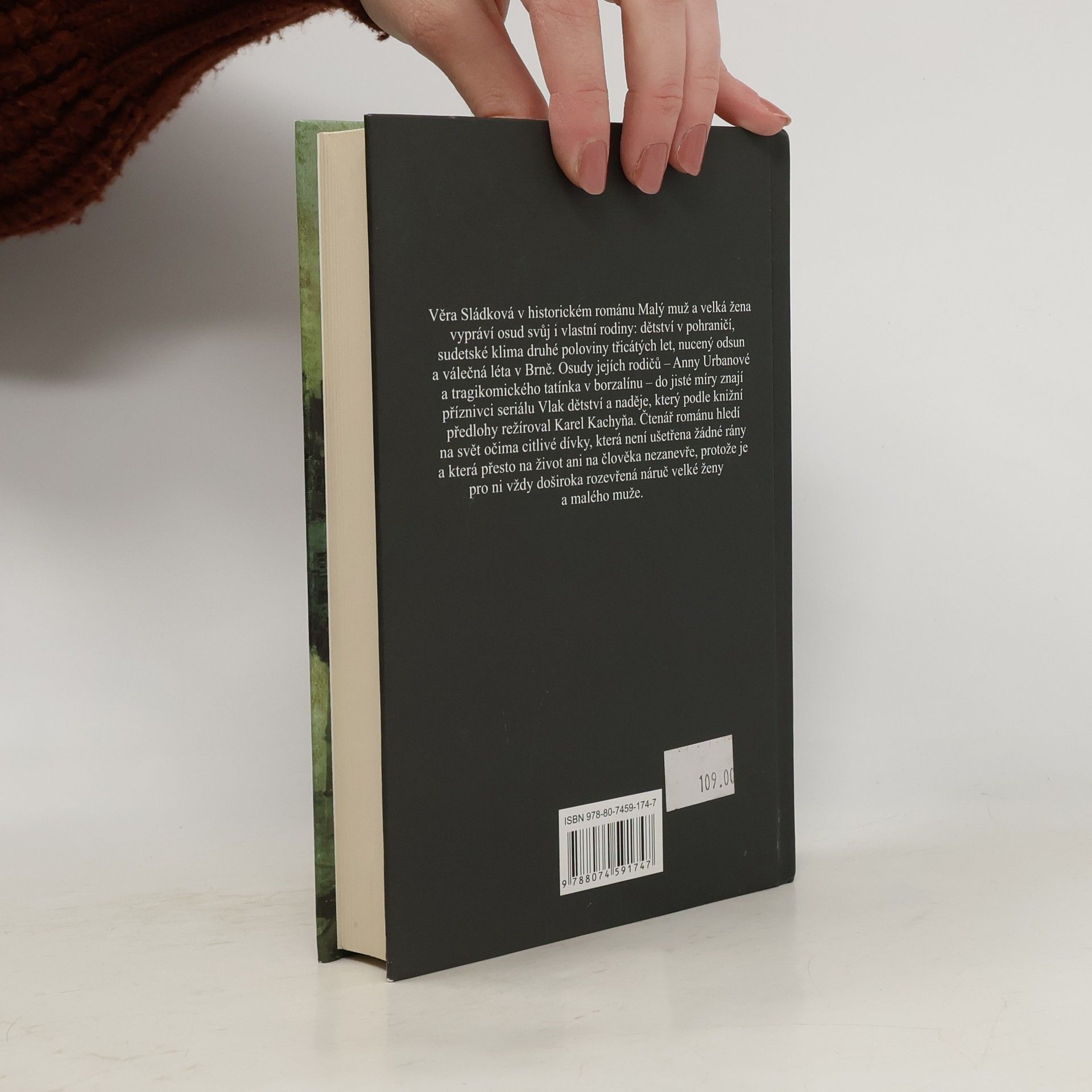 Věra Sládková v historickém románu Malý muž a velká žena vypráví osud svůj i vlastní rodiny: dětství v pohraničí, sudetské klima druhé poloviny třicátých let, nucený odsun a válečná léta v Brně. Osudy jejích rodičů - Anny Urbanové a tragikomického tatínka v borzalínu - do jisté míry znají příznivci seriálu Vlak dětství a naděje, který podle knižní předlohy režíroval Karel Kachyňa. Čtenář románu hledí na svět očima citlivé dívky, která není ušetřena žádné rány a která přesto na život ani na člověka nezanevře, protože je pro ni vždy doširoka rozevřená náruč velké ženy a malého muže. (Z přebalu knihy)
