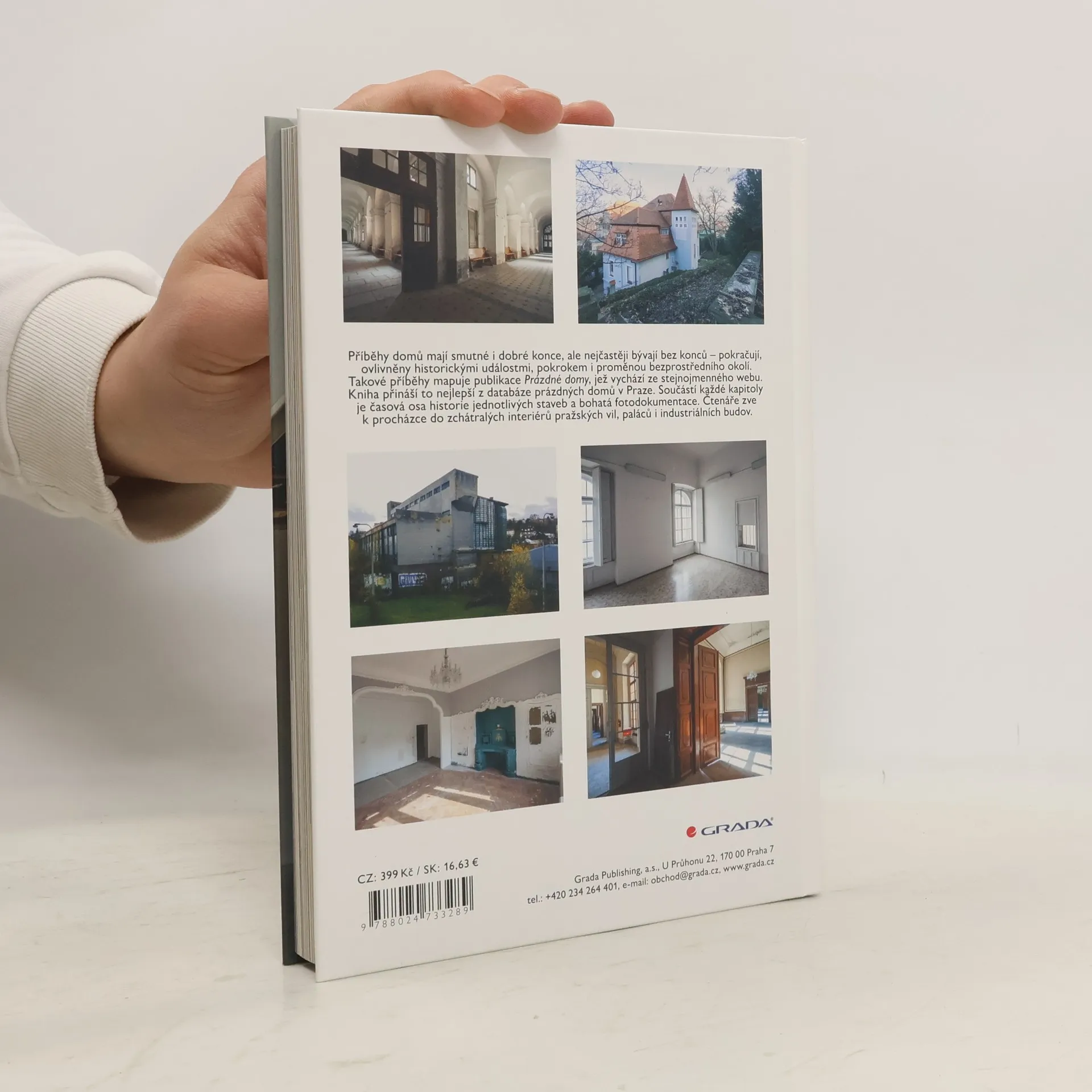 Příběhy domů mají smutné i dobré konce, ale nejčastěji bývají bez konců, pokračují. Ovlivněny historickými událostmi, pokrokem i proměnou bezprostředního okolí. Takové příběhy mapuje kniha Prázdné domy vycházející ze stejnojmenného webu. Internetové stránky spojily lidi, kterým na osudu těchto staveb záleží: Jsme přesvědčeni, že postavený dům nemá být prázdný. Zaznamenáváme. Hledáme příčiny. Motivujeme. Ovlivňujeme. Kniha Prázdné domy přináší to nejlepší z databáze prázdných domů v Praze. Součástí každé kapitoly je časová osa historie jednotlivých staveb a bohatá fotodokumentace. Čtenáře zve k procházce do zchátralých interiérů pražských vil, paláců i industriálních budov.