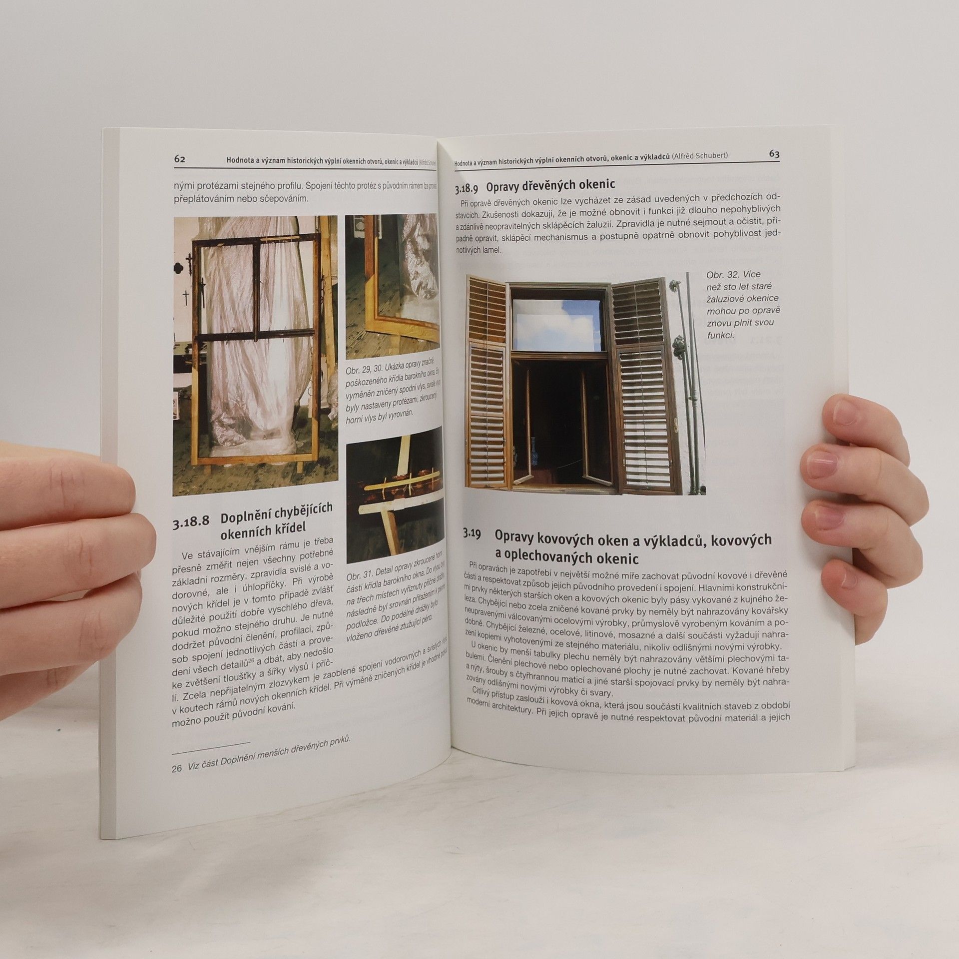 Odborně-metociká publikace o hodnotě a významu historických výplní oken, okenic a výkladců a jejich památkové obnově. Terminologie dané problematiky, nátěry a povrchové úpravy, technologie úprav, údržba výměna z hlediska stavebního práva. Četné ilustrace, seznam použité a doporučené literatury. První vydání.
