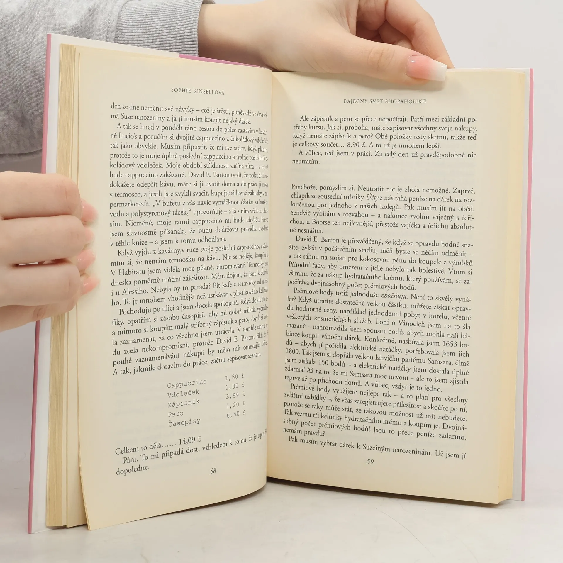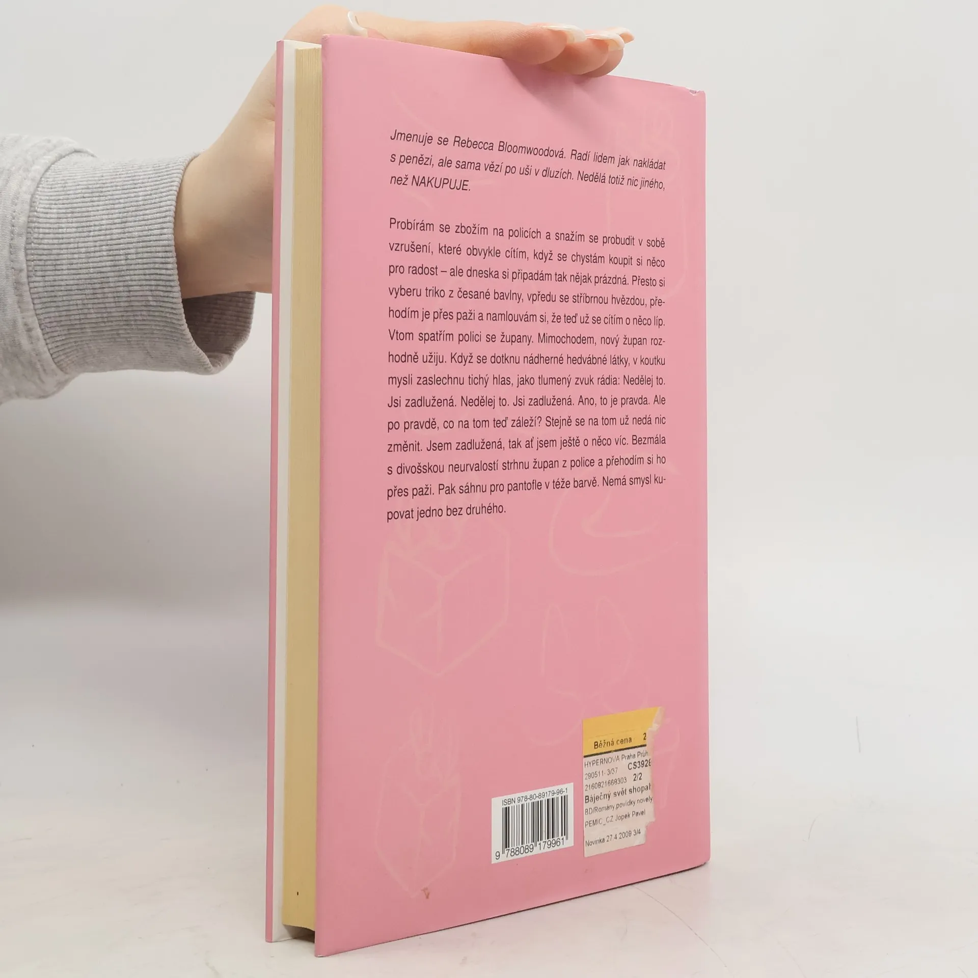 ALKOHOLIK nemůže žít bez pití, WORKOHOLIK bez práce a SHOPAHOLIK bez nákupů! Rebecca Bloomwoodová, mile praštěná hrdinka této knihy, je přímo živoucím důkazem shopaholika. Radí lidem, jak nakládat s penězi, ale sama vězí po uších v dluzích. Nedělá totiž nic jiného, než vášnivě nakupuje. Pracuje jako redaktorka v nepříliš známých novinách zaměřených - ta ironie! - na spoření, investování a vůbec rozumné nakládání s financemi. Pokud ale Rebecca něco zoufale neovládá, pak je to právě hospodaření s penězi. Nemůže sedět v kanceláři, aniž by přitom nemyslela na nákupy, nemůže jít po ulici, aby nevešla do obchodu, a nemůže do něho vstoupit, aby něco nekoupila. A protože se jí nadevše líbí pěkné věci a prahne po oblečení světových značek, není divu, že její úvěry a dluhy rostou do nebe a poštovní schránka přetéká stále výhrůžnějšími upomínkami. Začarovaný kruh lží a beznaděje, z něhož zdánlivě není úniku, se rozšiřuje. Nakonec pomůže nečekaná náhoda. Stačí jeden článek v celostátních novinách, jedno šokující pozvání do televize a jeden nepřítel, z něhož se náhle vyklube nejlepší přítel. Vlastně "přítel" možná není to nejlepší slovo… Když totiž dotyčný gentleman konečně pozve Rebeku na večeři, oba zjistí, že čistě náhodou…