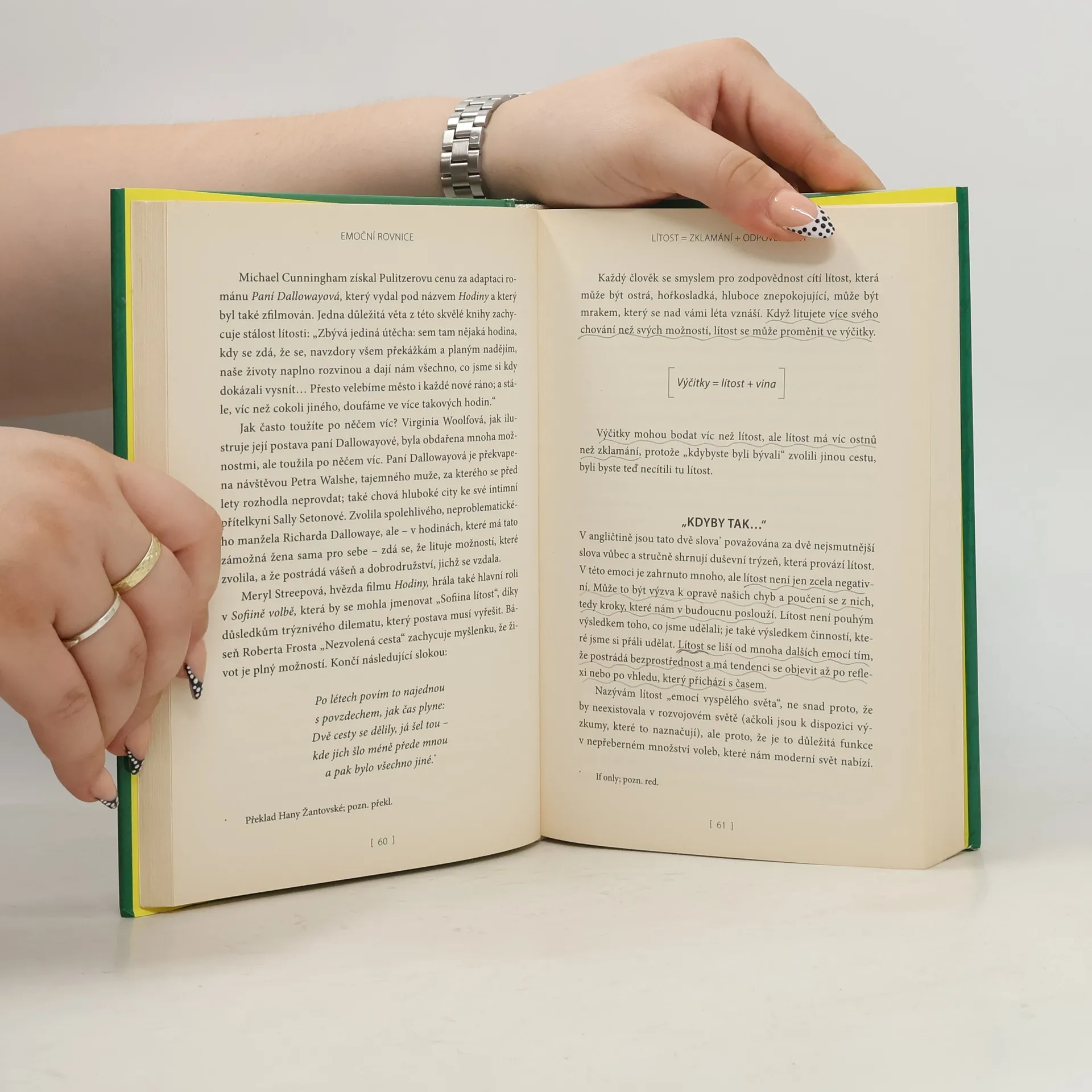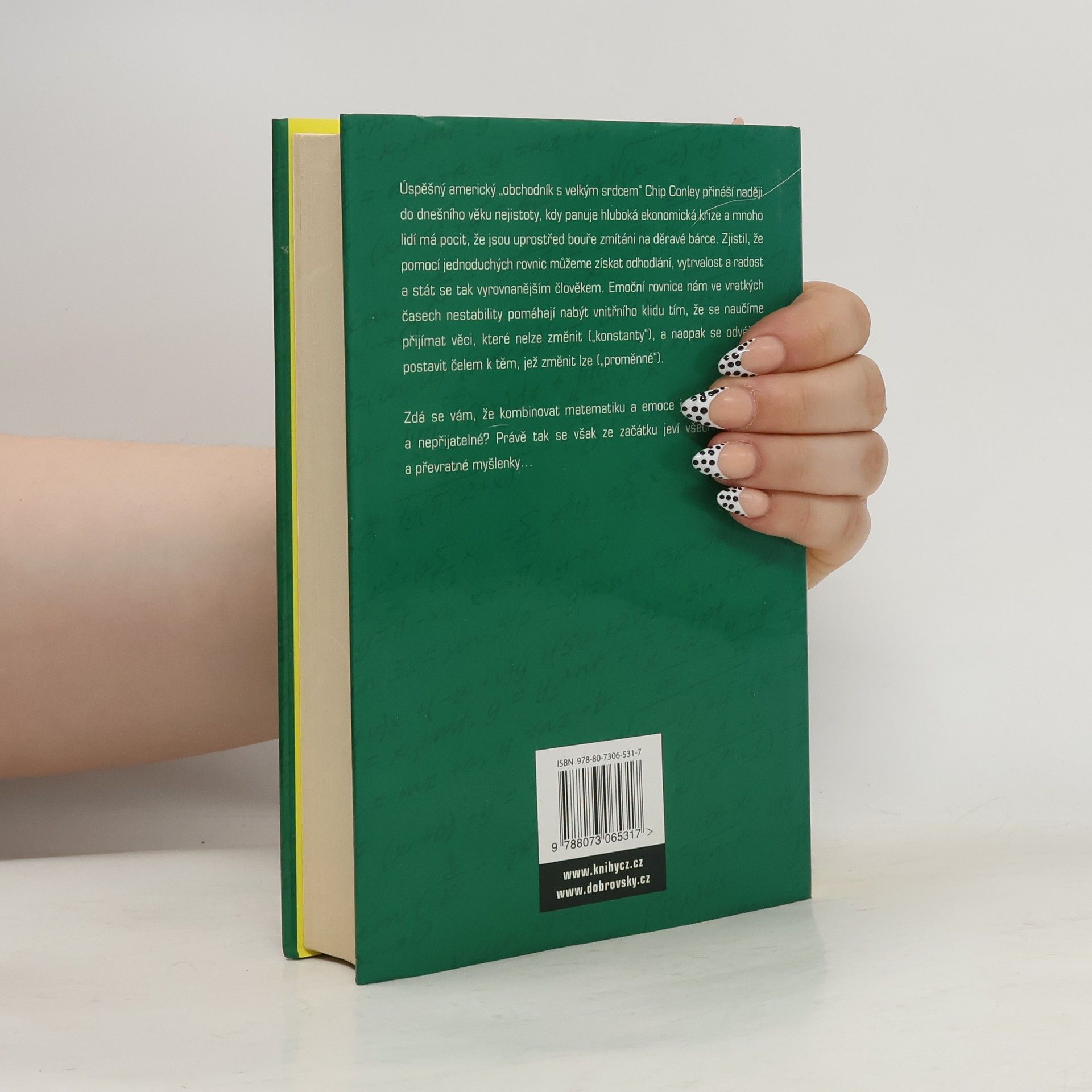 Dnes by nikdo o současném světě neřekl, že "žijeme v klidných vodách". A nedá se to říci ani o době, která přijde. V dnešním věku nejistoty, v období nejhlubší ekonomické krize za posledních 75 let, má mnoho lidí pocit, že jsou uprostřed silné bouře zmítáni na malé loďce. Úspěšný obchodník Chip Conley však zjistil, že pomocí jednoduchých slovních rovnic můžeme získat odhodlání, vytrvalost a radost a stát se tak lepším a vysoce výkonným člověkem. Emocionální rovnice vám přinášejí jednoduchý, ale velmi účinný způsob, jak nejlépe využít svých emocí. Radost=Láska-Strach Inovace= Kreativita - Konformita Mohlo by se zdát, že kombinovat matematiku a emoce je proti našemu intuitivnímu chování, to však ty nejlepší myšlenky často bývají. Conleyho Emocionální rovnice fungují jako mantry, které nám v časech nejistoty pomáhají získat stabilitu, které nám pomáhají zaměřit se na věci, které můžeme změnit ("proměnné") a vše ostatní ("konstanty") ponechat stranou.
