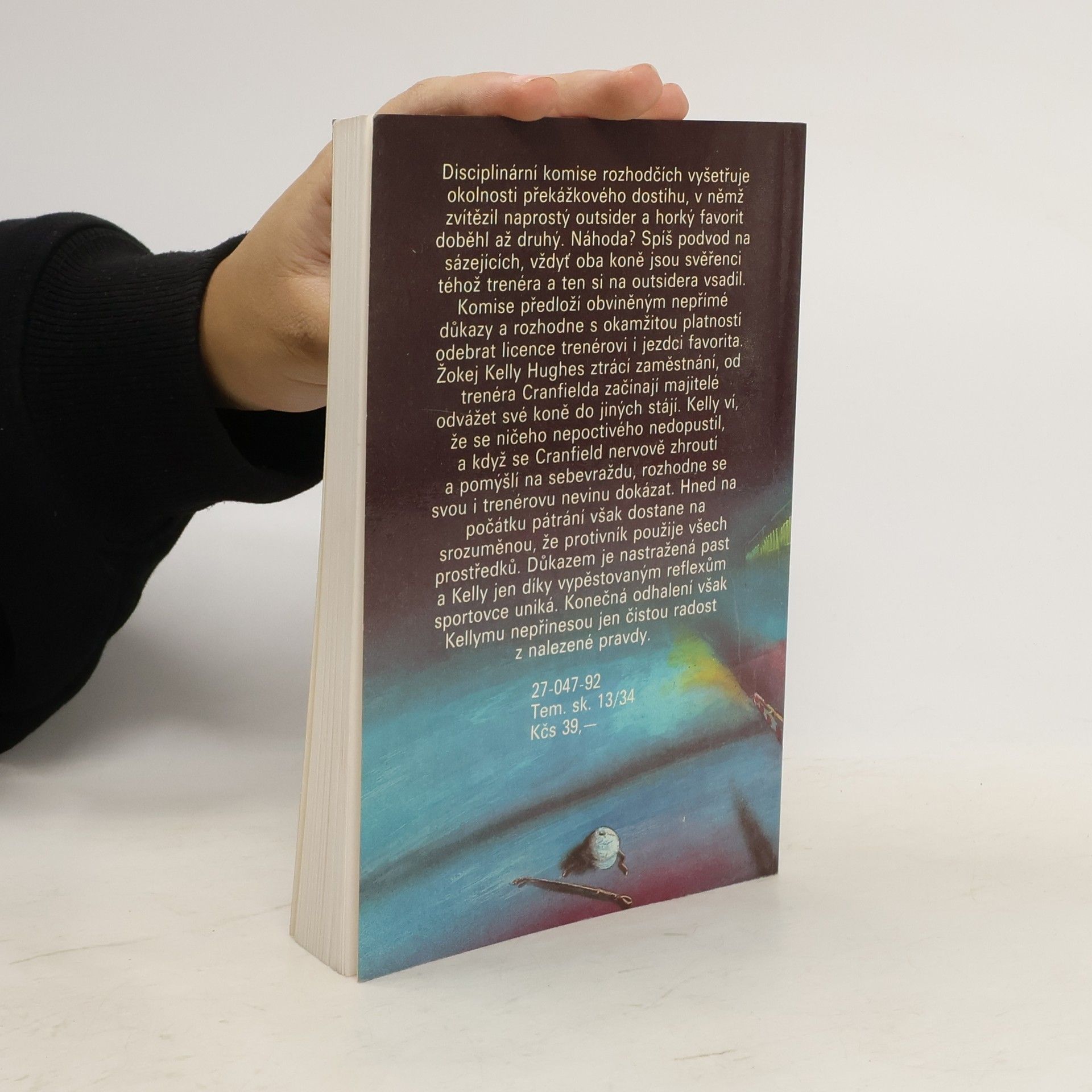 Disciplinární komise rozhodčích vyšetřuje okolnosti překážkového dostihu, v němž zvítězil naprostý outsider a horký favorit doběhl až druhý. Náhoda? Spíš podvod na sázejících, vždyť oba koně jsou svěřenci téhož trenéra a ten si na outsidera vsadil. Komise předloží obviněným nepřímé důkazy a rozhodne s okamžitou platností odebrat licence trenérovi i jezdci favorita. Žokej Kelly Hughes ztrácí zaměstnání, od trenéra Cranfielda začínají majitelé odvážet své koně do jiných stájí. Kelly ví, že se ničeho nepoctivého nedopustil, a když se Cranfield nervově zhroutí a pomýšlí na sebevraždu, rozhodne se svou i trenérovu nevinu dokázat. Hned na počátku pátrání však dostane na srozuměnou, že protivník použije všech prostředků. Důkazem je nastražená past a Kelly jen díky vypěstovaným reflexům sportovce uniká. Konečná odhalení však Kellymu nepřinesou jen čistou radost z nalezené pravdy. (nakladatel)... celý text