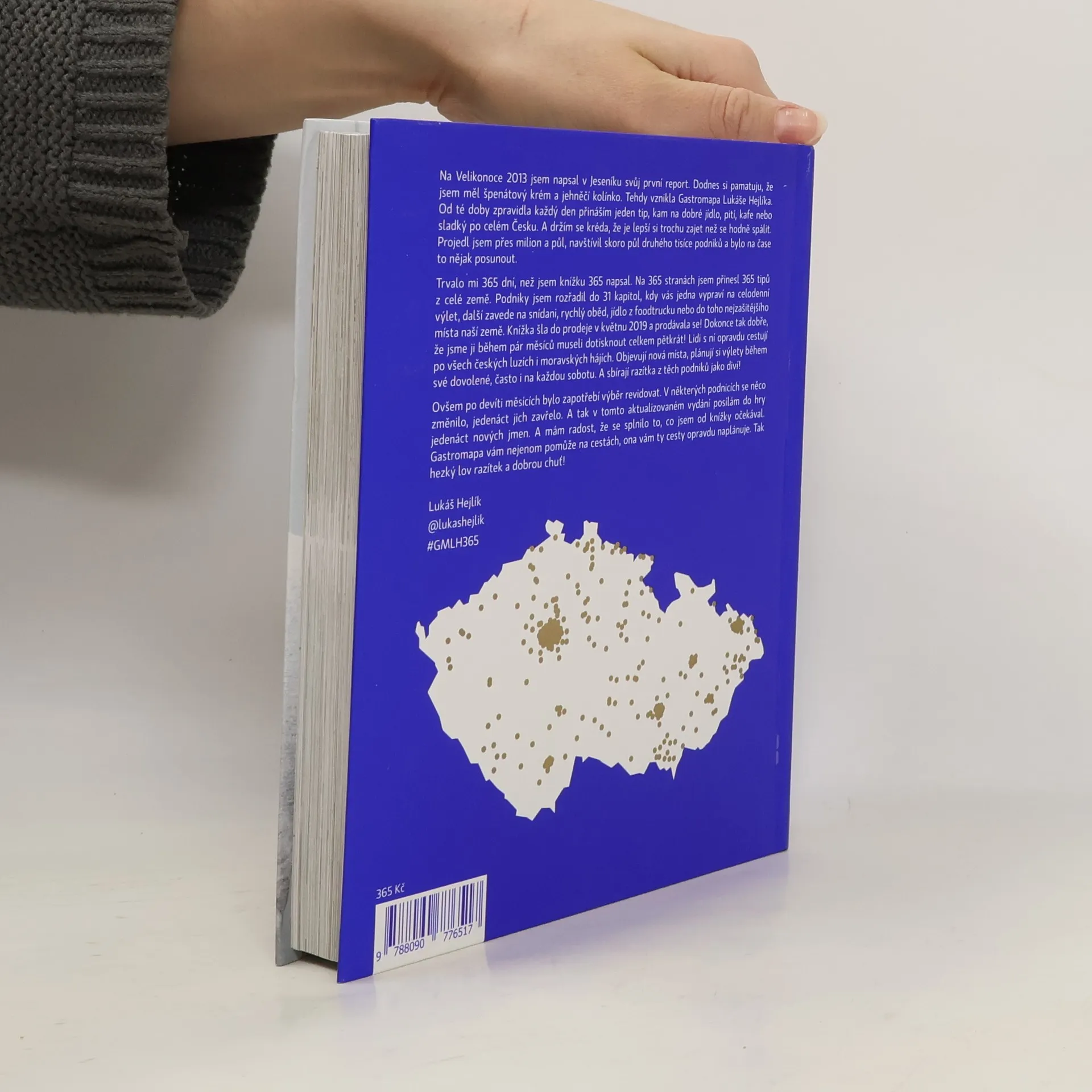 Herec a gastronadšenec Lukáš Hejlík se v roce 2020 hlásí s aktualizovaným vydáním gurmet průvodce 365 - Gastromapa Lukáše Hejlíka. Kniha vznikla ze stejnojmenného blogu, kterému se autor věnuje již 7 let. Lukáš objíždí české luhy a moravské háje a každý den přináší jeden tip na místo, kde se lidé můžou dobře najíst, napít, dát si skvělou kávu nebo něco sladkého. S Gastromapou můžete plánovat výlety a objevovat nová místa. U každého podniku máte navíc prostor na razítko, a že vám ho tam rádi lípnou! Aktualizované vydání je stále rozčleněno do do 31 kapitol, kdy vás jedna vypraví na celodenní výlet, další zavede na snídani, rychlý oběd, jídlo z foodtrucku nebo do toho nejzašitějšího místa naší země. Počet podniků v knize se nezměnil, je jich stále 365, i když 10 z nich bylo nahrazeno místy novými. Proč? Jednoduše proto, protože zavřely.