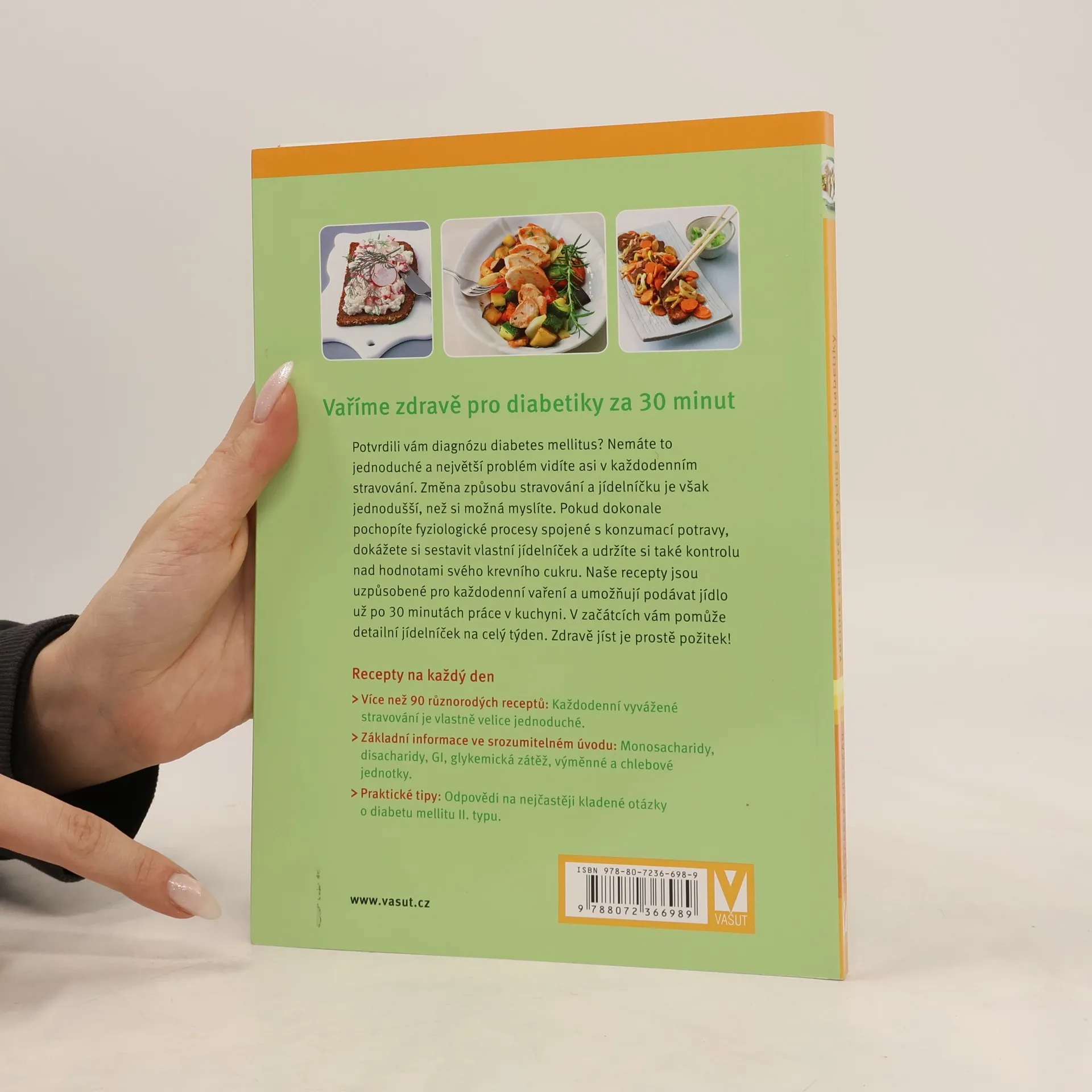 Potvrdili vám diagnózu diabetes mellitus? Nemáte to jednoduché a největší problém vidíte asi v každodenním stravování. Změna způsobu stravování a jídelníčku je však jednodušší, než si možná myslíte. Pokud dokonale pochopíte fyziologické procesy spojené s konzumací potravy, dokážete si sestavit vlastní jídelníček a udržíte si také kontrolu nad hodnotami svého krevního cukru. Naše recepty jsou uzpůsobené pro každodenní vaření a umožňují podávat jídlo už po 30 minutách práce v kuchyni. V začátcích vám pomůže detailní jídelníček na celý týden. Zdravě jíst je prostě požitek! Užijte si recepty na každý den: - Více než 90 různorodých receptů: Každodenní vyvážené stravování je vlastně velice jednoduché. - Základní informace ve srozumitelném úvodu: Monosacharidy, disacharidy, GI, glykemická zátěž, výměnné a chlebové jednotky. - Praktické tipy: Odpovědi na nejčastěji kladené otázky o diabetu mellitu II. typu. (90 chutných jídel připravených do 30 minut)