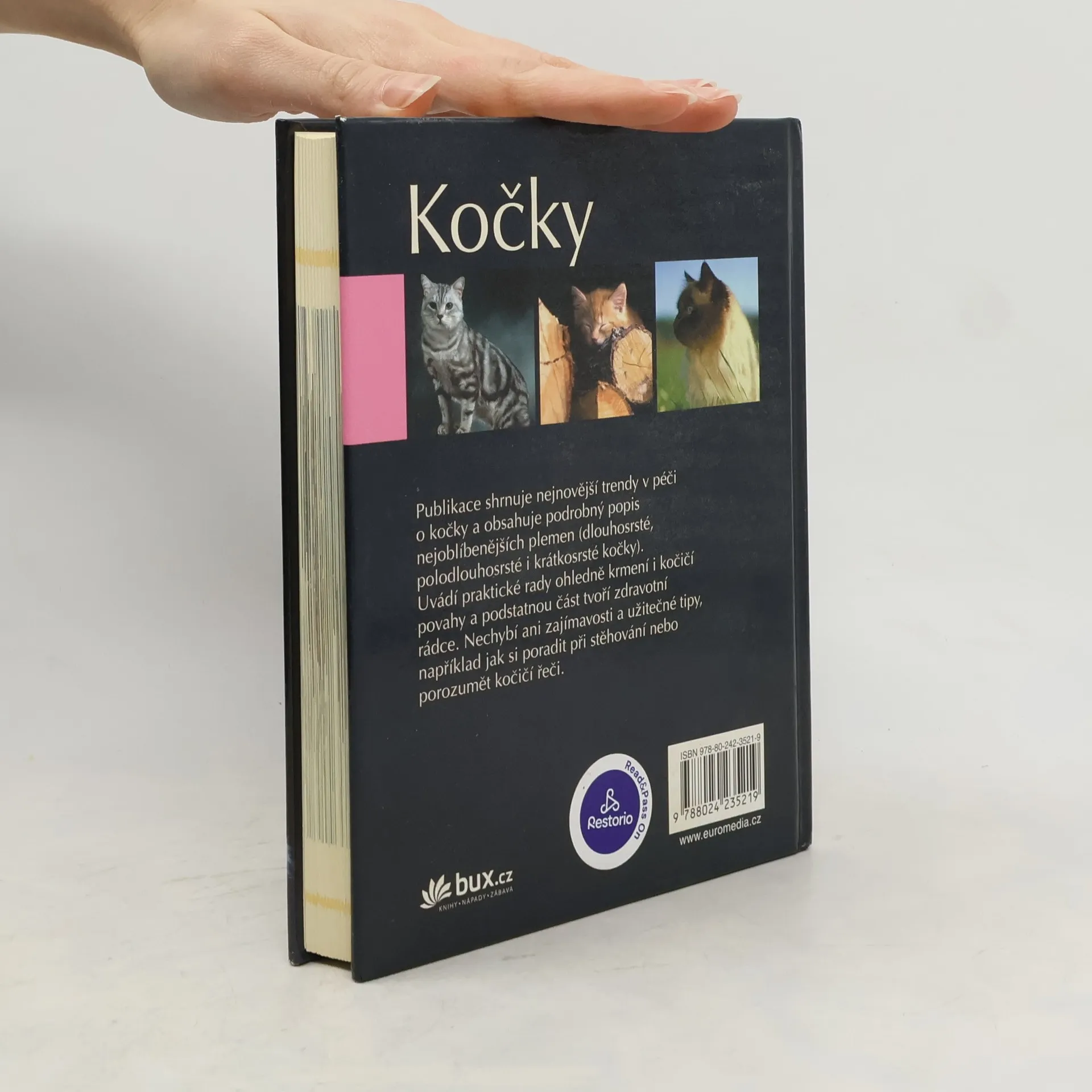 Publikace shrnuje nejnovější trendy v péči o kočky a obsahuje podrobný popis nejoblíbenější plemen (dlouhosrsté, polodlouhosrsté i krátkosrsté kočky). Uvádí praktické rady ohledně krmení i kočičí povahy a podstatnou část tvoří zdravotní rádce. Nechybí ani zajímavosti a užitečné tipy, například jak si poradit při stěhování nebo porozumět kočičí řeči.