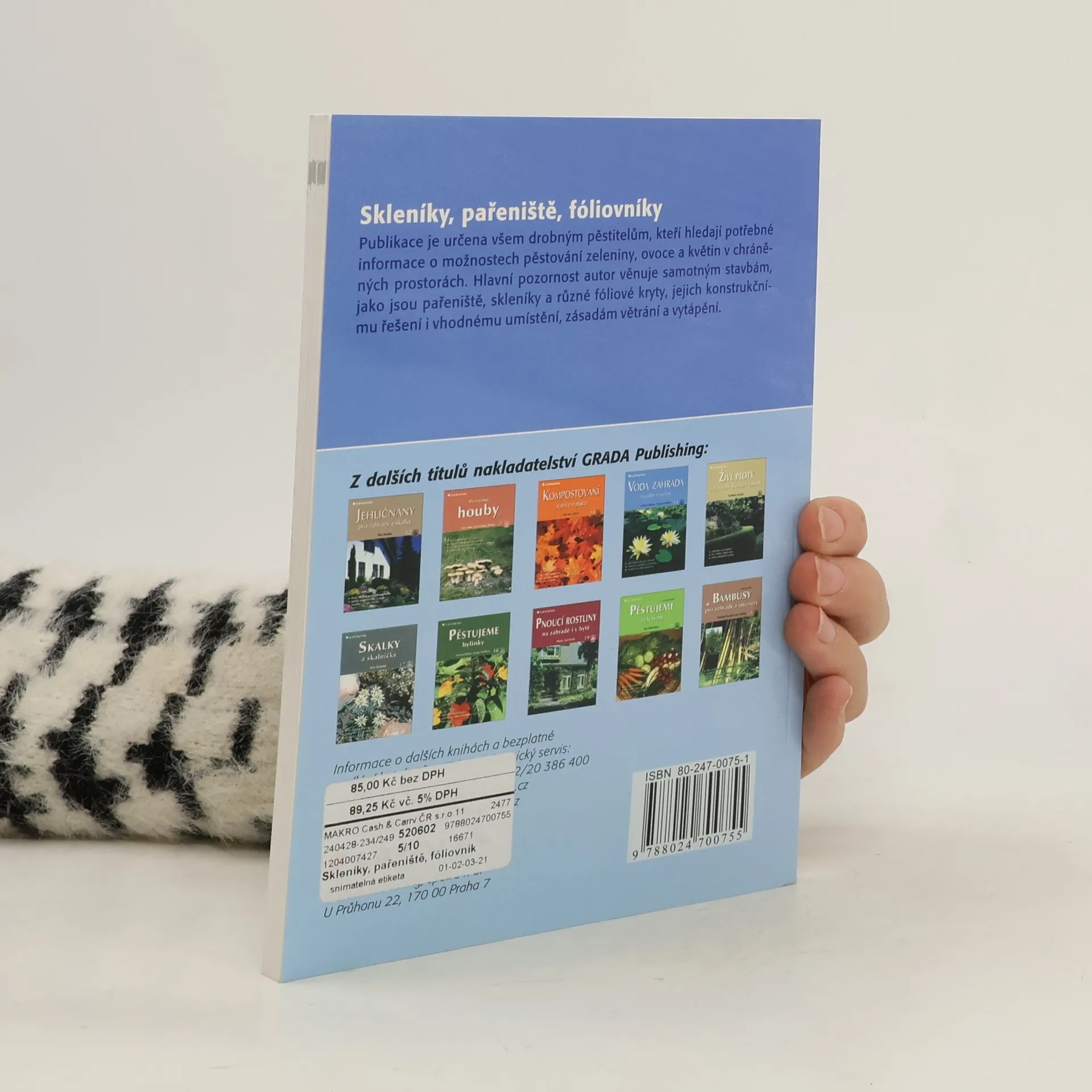 Populární příručka popisuje stavbu skleníků, folióvníků a dalších podobných pomůcek i jejich použití. Určeno zahrádkářům. Text je velmi návodný i pro úplné začátečníky a je doprovázen množstvím názorných ilustrací.