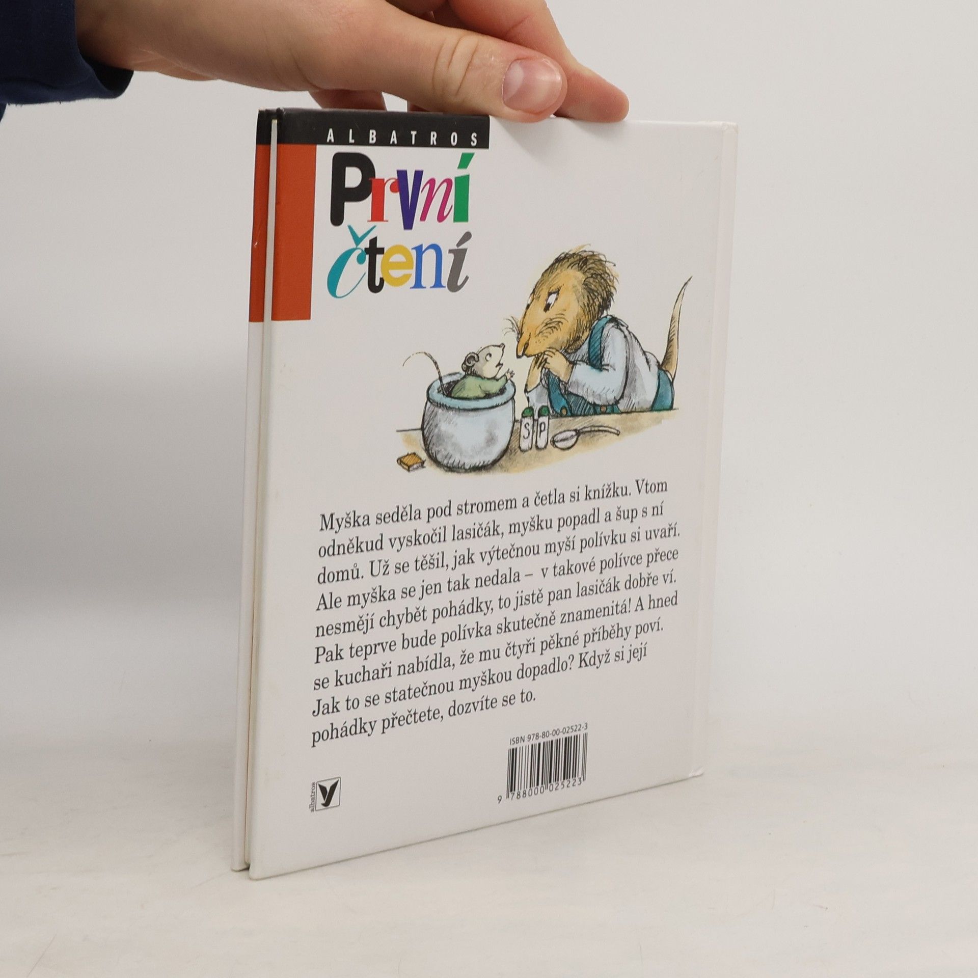 Myška seděla pod stromem a četla si knížku. Vtom odněkud vyskočil lasičák, myšku popadl a šup s ní domů. Už se těšil, jak výtečnou myší polívku si uvaří. Ale myška se jen tak nedala – v takové polívce přece nesmějí chybět pohádky, to jistě pan lasičák dobře ví. Pak teprve bude polívka skutečně znamenitá! A hned se kuchaři nabídla, že mu čtyři pěkné příběhy poví. Jak to se statečnou myškou dopadlo? Když si její pohádky přečtete, dozvíte se to.