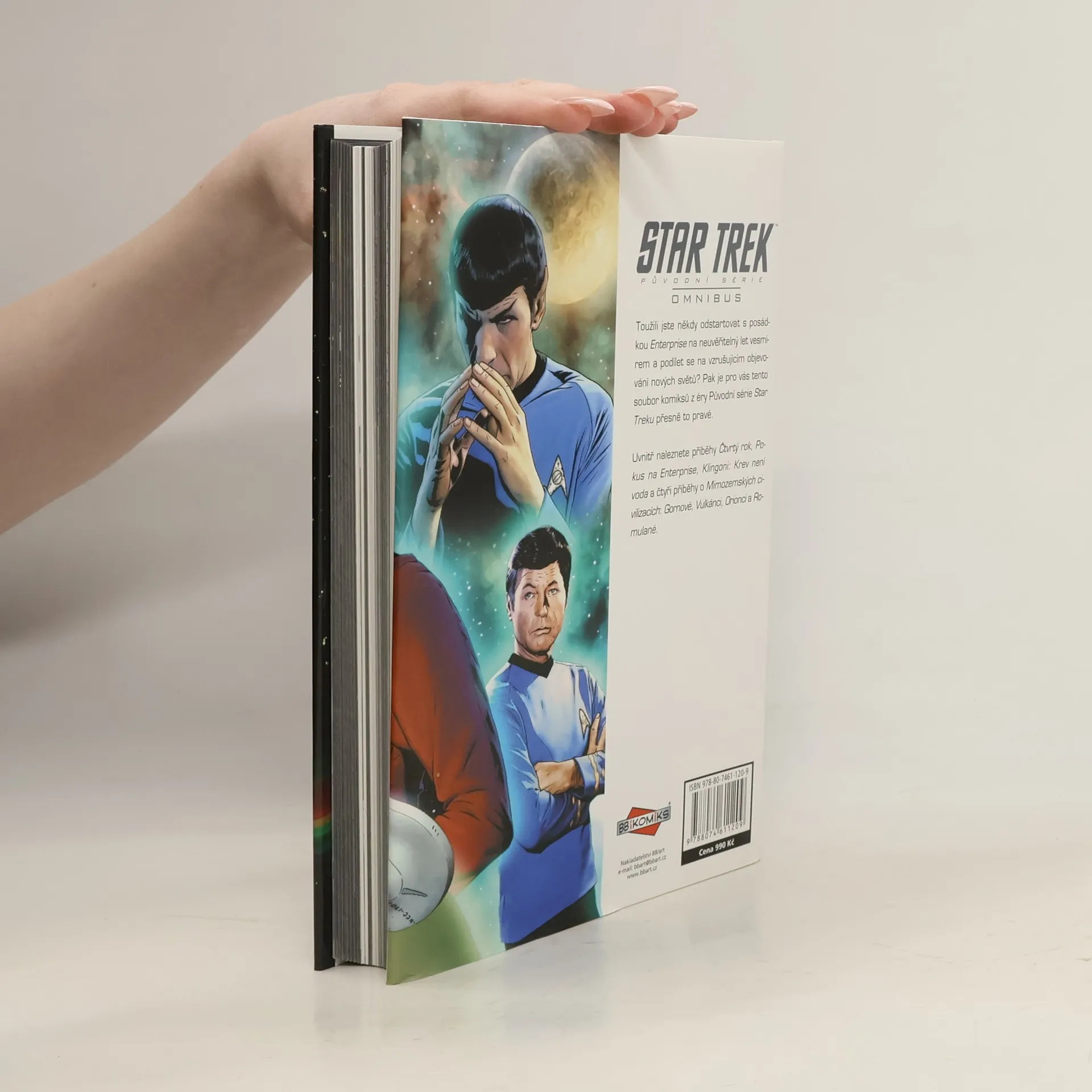 Uvnitř omnibusu naleznete Čtvrtý rok původní série Star Treku, Pokus na Enterprise, Klingoni: Krev není voda a čtyři příběhy o Mimozemských civilizacích: Gornové, Vulkánci, Orionci a Romulané. V tomto omnibusu naleznete dobrodružství ze světa Star Treku, vydaná původně ve 23 sešitech. Prvních jedenáct vás provede čtvrtým rokem mise hvězdné lodi Enterprise a posádky kapitána Kirka. Setkáte se s fenoménem připomínajícím obrovskou šroubovici DNA, potkáte životní formu na bázi viru, jež se šíří zvukem, i mnoho dalších nových druhů. Posádka Enterprise dokonce při návštěvě jedné cizí planety vystoupí v televizní show. V dalších pěti příbězích nahlédnete do tajů klingonské kultury a zažijete napínavé chvíle s tímto hrdým druhem, pro něhož je nejvyšší čest hrdinně padnout v boji. V posledních sedmi sešitech obohatíte své znalosti o další pozoruhodné mimozemské druhy, které jste měli možnost spatřit v seriálu Star Trek. Dozvíte se o ještěrovitých Gornech, kteří jsou taktéž znamenitými válečníky. Záhadní Vulkánci provázejí lidstvo již od prvního kontaktu, Romulané milují pikle a jsou opravdovými mistry v přetvářce, smyslní Orionci skrývají nejedno tajemství, a jak už to tak bývá, nakonec je vše jinak, než jak se zdá. Samozřejmě nechybí ani roztomilí tribblové, kteří dokáží pěkně zamotat hlavu nejednomu kapitánovi a zahnat na útěk i hrdé válečníky Klingonské říše.
