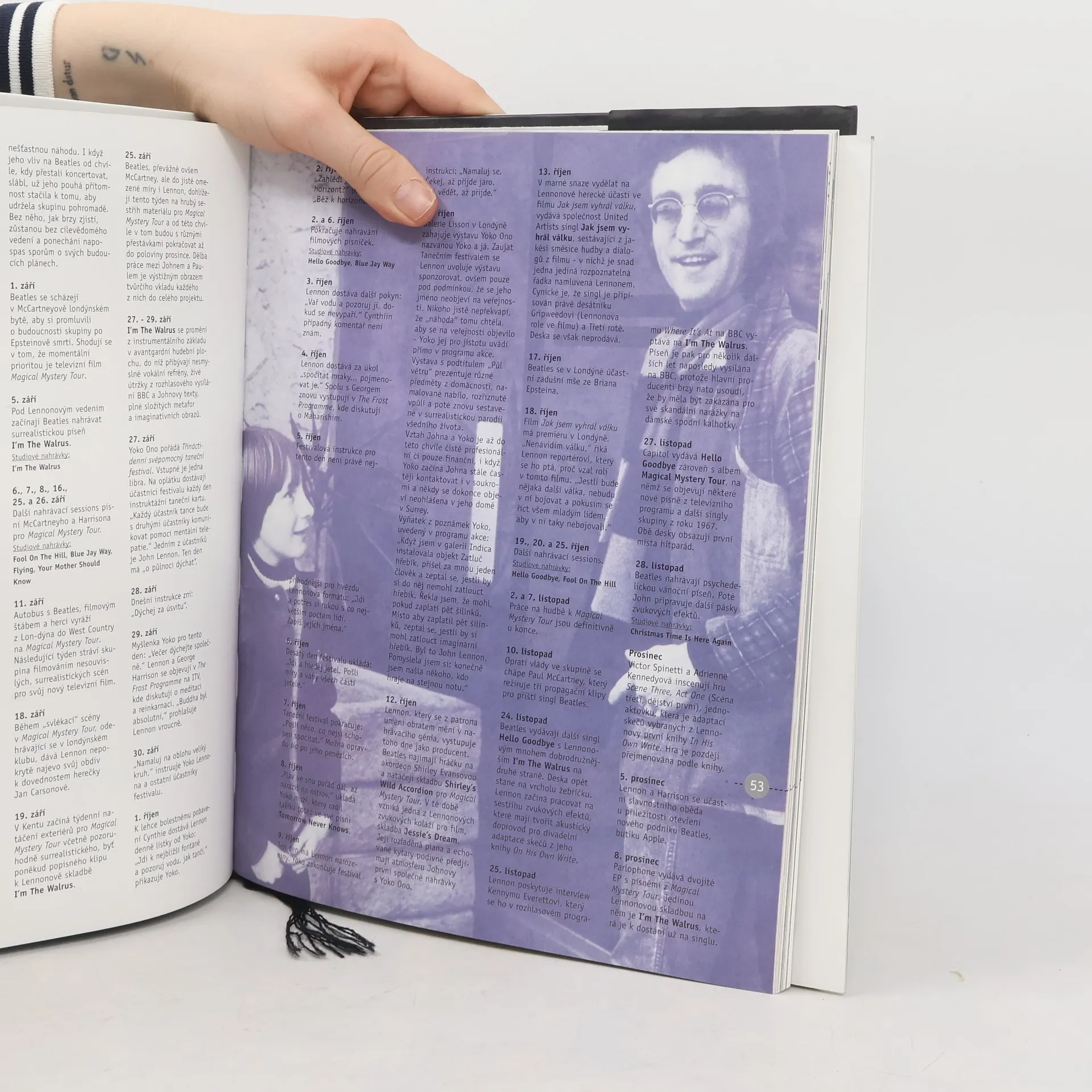 Život legendárního člena Beatles v datech a fotografiích. Unikátní dokument zaznamenává den po dni, rok po roce důležitá fakta ze zpěvákova osobního života i profesionální dráhy. Součástí knihy je plakát Johna Lennona.