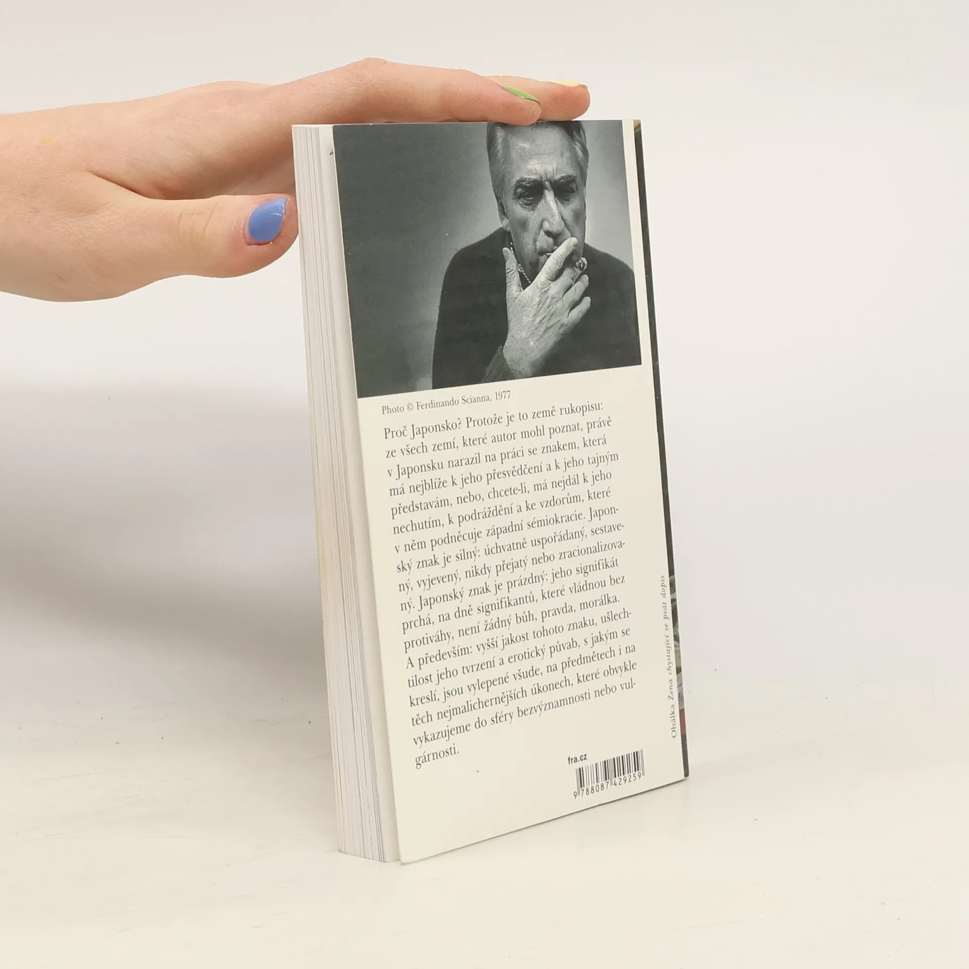 Eseje o Japonsku od jednoho z nejdůležitělších myslitelů minulého století. Proč Japonsko? Protože je to země rukopisu: ze všech zemí, které Roland Barthes (1915–1980) mohl poznat, právě v Japonsku narazil na práci se znakem, která má nejblíže k jeho přesvědčení a k jeho tajným představám, nebo, chcete-li, má nejdál k jeho nechutím, k podráždění a ke vzdorům, které v něm podněcuje západní sémiokracie. Japonský znak je silný: úchvatně uspořádaný, sestavený, vyjevený, nikdy přejatý nebo zracionalizovaný. Japonský znak je prázdný: jeho signifikát prchá, na dně signifikantů, které vládnou bez protiváhy, není žádný bůh, pravda, morálka. A především: vyšší jakost tohoto znaku, ušlechtilost jeho tvrzení a erotický půvab, s jakým se kreslí, jsou vylepené všude, na předmětech i na těch nejmalichernějších úkonech, které obvykle vykazujeme do sféry bezvýznamnosti nebo vulgárnosti. Bude řeč o městě, o obchodě, o divadle, o zdvořilosti, o zahradách, o násilí; bude řeč o několika gestech, o několika pokrmech, o několika básních; bude řeč o tvářích, o očích a o štětcích, kterými se tohle všechno píše, ale nemaluje.