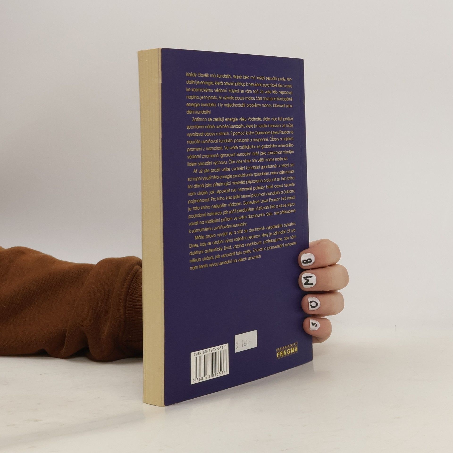Kundalini je životodárná energie, která otevírá přístup k psychické síle a kosmickému vědomí. Kniha vás naučí, jak tuto energii uvolňovat postupně a bezpečně, a jak pracovat s dosud nepojmenovatelnými potřebami. Každý má kundalini, stejně jako sexuální pudy. Pokud cítíte, že vaše tělo nefunguje naplno, je to často kvůli nedostatečnému využívání této energie. I drobné problémy mohou blokovat její tok. V době zesilujících energií věku Vodnáře prožívá stále více lidí spontánní uvolnění kundalini, které může vyvolávat obavy. S pomocí této knihy se naučíte, jak uvolnit kundalini bezpečně a efektivně. Neznalost vyvolává strach, a ignorování kundalini je jako zakazování sexuální výchovy mladým lidem. Čím více víme, tím více možností máme. Ať už jste zažili intenzivní uvolnění kundalini nebo vaše energie dřímá, tato kniha vám ukáže, jak uspokojit neznámé potřeby. Je ideálním průvodcem pro ty, kdo chtějí pracovat s kundalini a čakrami. Autorka poskytuje podrobné instrukce pro očistu těla a přípravu na duchovní růst před samotným uvolněním kundalini. Máte právo na duchovní vývoj, a v dnešní době, kdy se osobní růst urychluje, je důležité mít někoho, kdo vám tuto cestu usnadní. Znalost kundalini vám pomůže na všech úrovních.