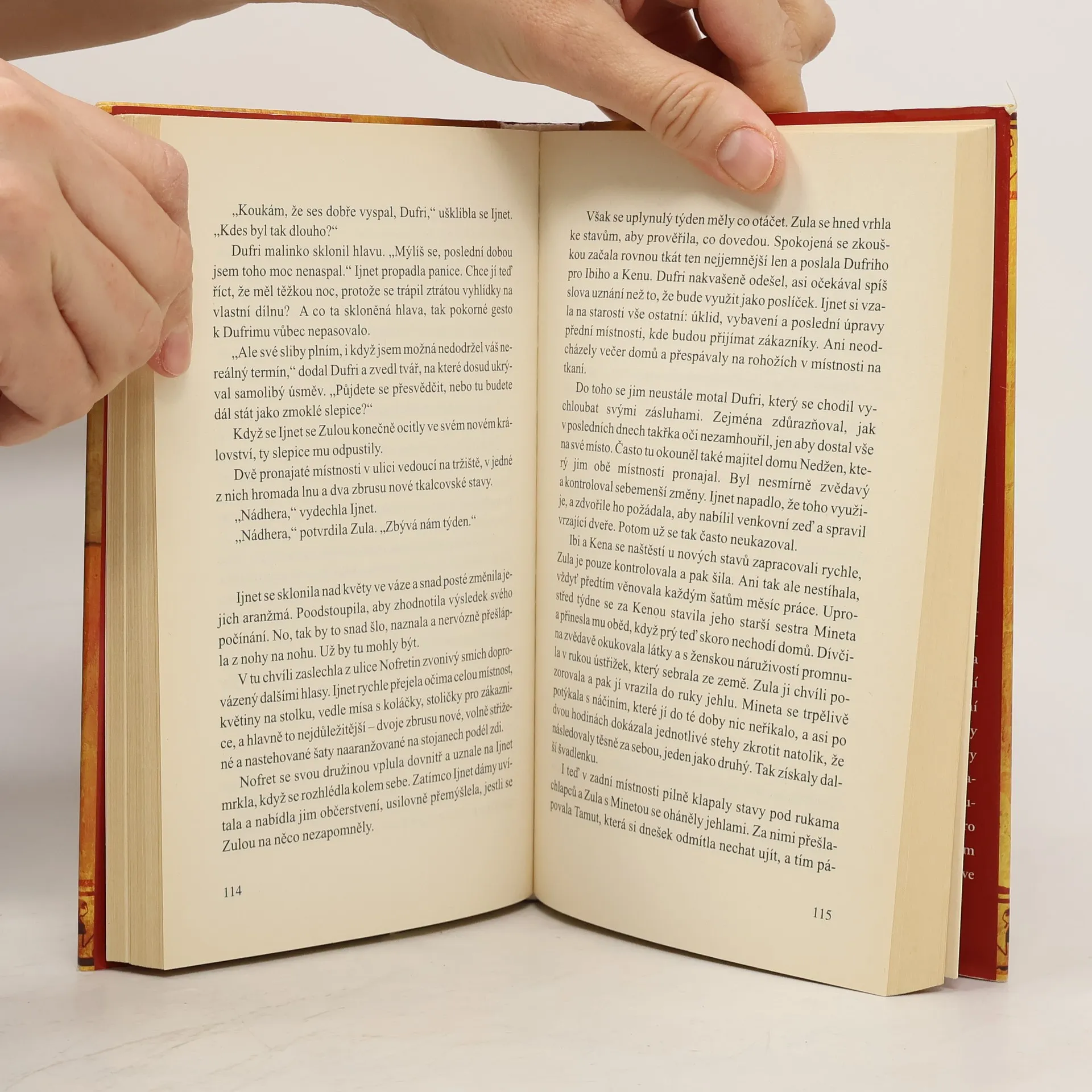 Starověký Egypt, jeho mysteria, nástrahy každodenního života i lesk královského paláce... Právě v těchto kulisách se odvíjí příběh mladé Ijnet, která naivně očekává, že se naplní její předem daný osud, jaký prožívají stovky egyptských žen. Manželství se strýcem Verenachtem se však rozhodně neodehrává podle jejích představ a nečekané zjevení Verenachtova nemanželského syna Kemneta k rodinnému souladu také nepřispěje. O to víc Ijnet zaskočí, když se z nesnesitelného Kemneta vyklube osudová láska. Dokáže se zamilovaná Ijnet vypořádat s Kemnetovým odchodem, neplánovaným těhotenstvím a smrtí manžela? Naštěstí jí bohové sešlou věrné přítelkyně, nečekaný poklad a skvělý nápad. Úspěch a bohatství ale nezaručují to nejdůležitější, po čem Ijnet tajně touží. A tehdy se znovu potkává s Kemnetem, ovšem za poněkud temných okolností...