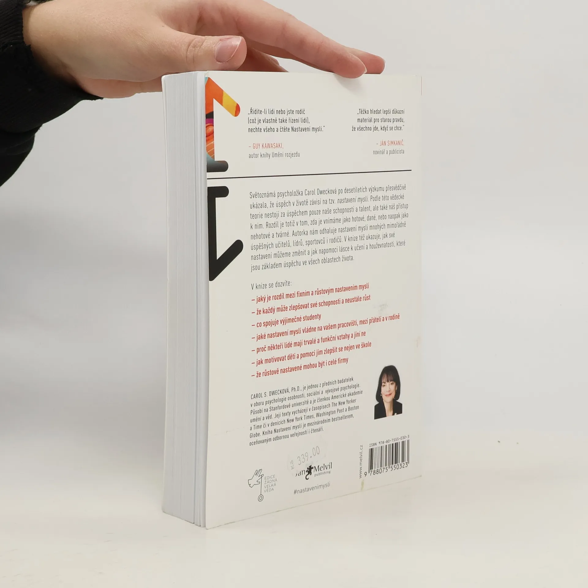 Jednoduchá myšlenka, kolem níž se tato kniha točí, a za níž stojí desítky let vědeckého výzkumu, se dá vyjádřit zhruba takto: úspěch máme ve svých hlavách. Profesorka Dwecková se svým týmem na Standfordské univerzitě zjistila, že svou přirozeností tíhneme ke dvěma relativně vyhraněným způsobům myšlení o sobě a své úspěšnosti: k myšlení růstovému a myšlení fixnímu (angl. „growth mindset“ a „fixed mindset“). To, které myšlení u nás převládá, pak významně ovlivňuje naši reálnou úspěšnost. Ke zjištěním Dweckové popsaným v knize patří nadějný závěr, že se navzdory své dispozici dokážeme během života změnit, a autorka ukazuje, jak na to: jak využít svůj plný potenciál. Chcete vědět, jak přesně se dva zmíněné typy myšlení projevují? Typickým rysem fixního myšlení je vzdávání se před překážkou, neschopnost přijímat zpětnou vazbu, špatný pocit při vnímání úspěchu ostatních, vyhýbání se výzvám a negativní postoj k úsilí jako takovému. Naopak růstové myšlení se projevuje vřelým vztahem k výzvám, vytrvalostí při čelení překážkám, pozitivním vztahem ke kritice. Růstově myslící člověk vnímá úsilí jako cestu k mistrovství a v úspěchu druhých vidí inspiraci.