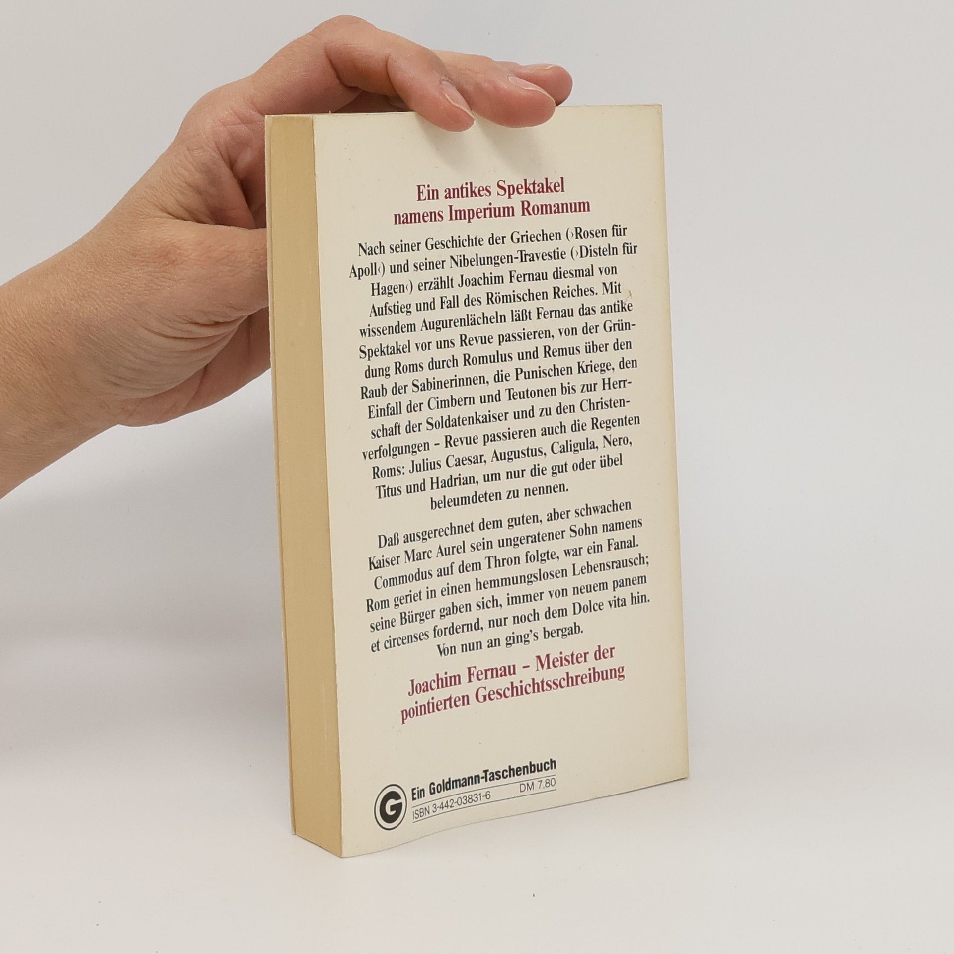 Rom, von der Gründung durch Romulus und Remus bis zu den Christenverfolgungen. Von Julius Caesar, Augustus und Nero bis hin zu Commodus, dessen Herrschaft den Untergang Roms einläutete. Die dramatische Geschichte eines Weltreichs, von Joachim Fernau spannend erzählt.