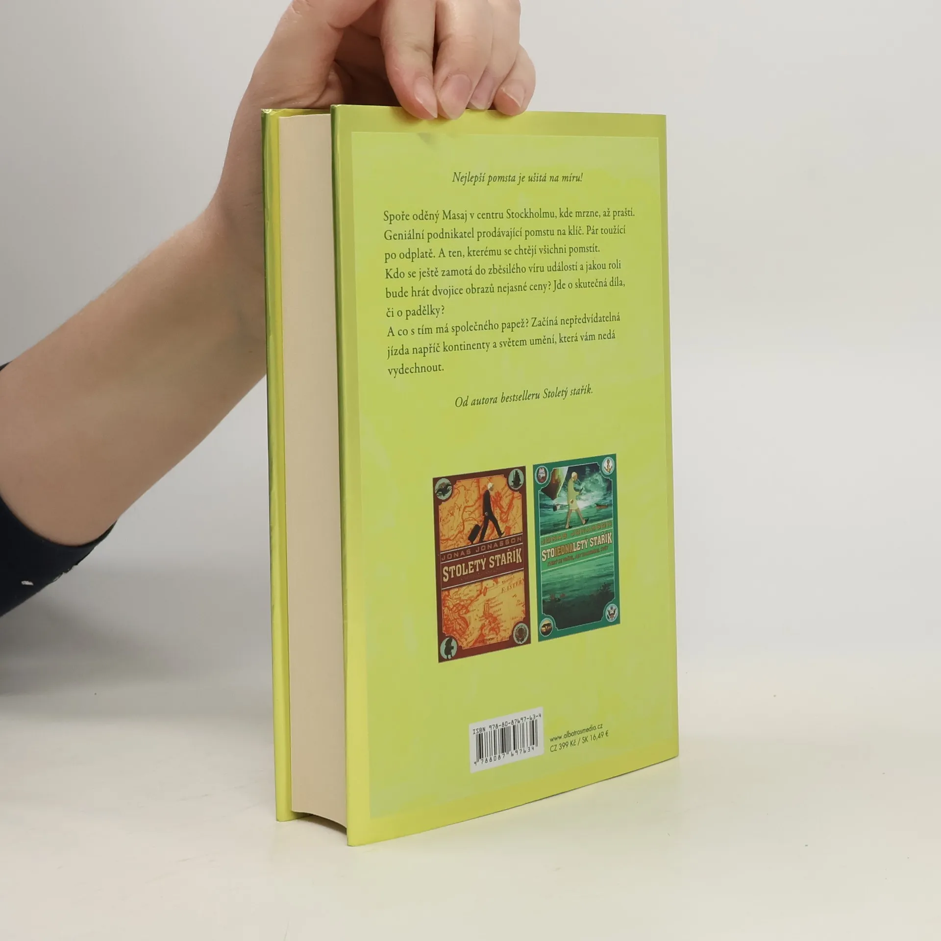 Nejlepší pomsta je ušitá na míru! Od autora bestselleru Stoletý stařík. Spoře oděný Masaj v centru Stockholmu, kde mrzne, až praští. Geniální podnikatel prodávající pomstu na klíč. Pár toužící po odplatě. A ten, kterému se chtějí všichni pomstít. Kdo se ještě zamotá do zběsilého víru událostí a jakou roli bude hrát dvojice obrazů nejasné ceny? Jde o skutečná díla, či o padělky? A co s tím má společného papež? Začíná nepředvídatelná jízda napříč kontinenty a světem umění, která vám nedá vydechnout.