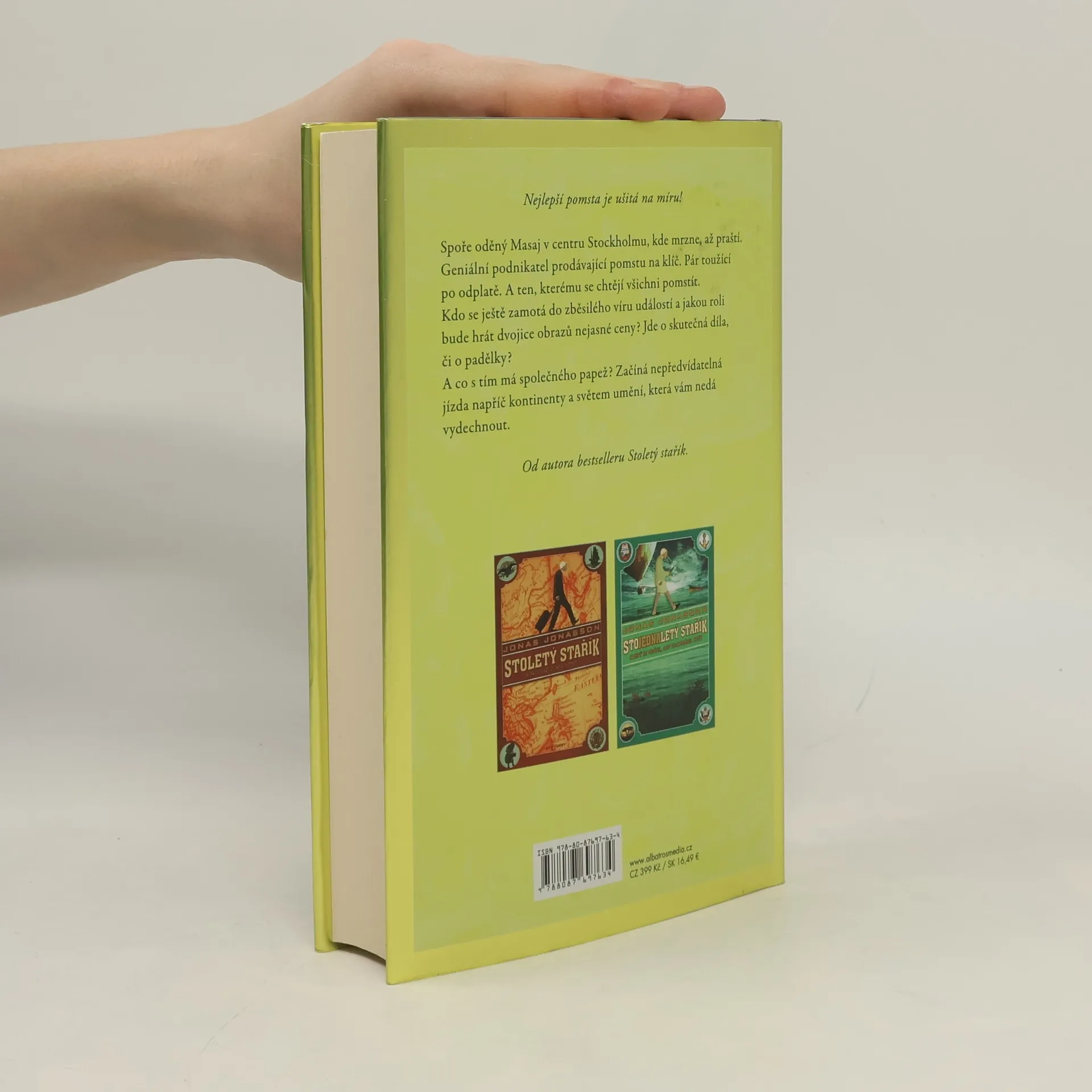 Nejlepší pomsta je ušitá na míru! Od autora bestselleru Stoletý stařík. Spoře oděný Masaj v centru Stockholmu, kde mrzne, až praští. Geniální podnikatel prodávající pomstu na klíč. Pár toužící po odplatě. A ten, kterému se chtějí všichni pomstít. Kdo se ještě zamotá do zběsilého víru událostí a jakou roli bude hrát dvojice obrazů nejasné ceny? Jde o skutečná díla, či o padělky? A co s tím má společného papež? Začíná nepředvídatelná jízda napříč kontinenty a světem umění, která vám nedá vydechnout.