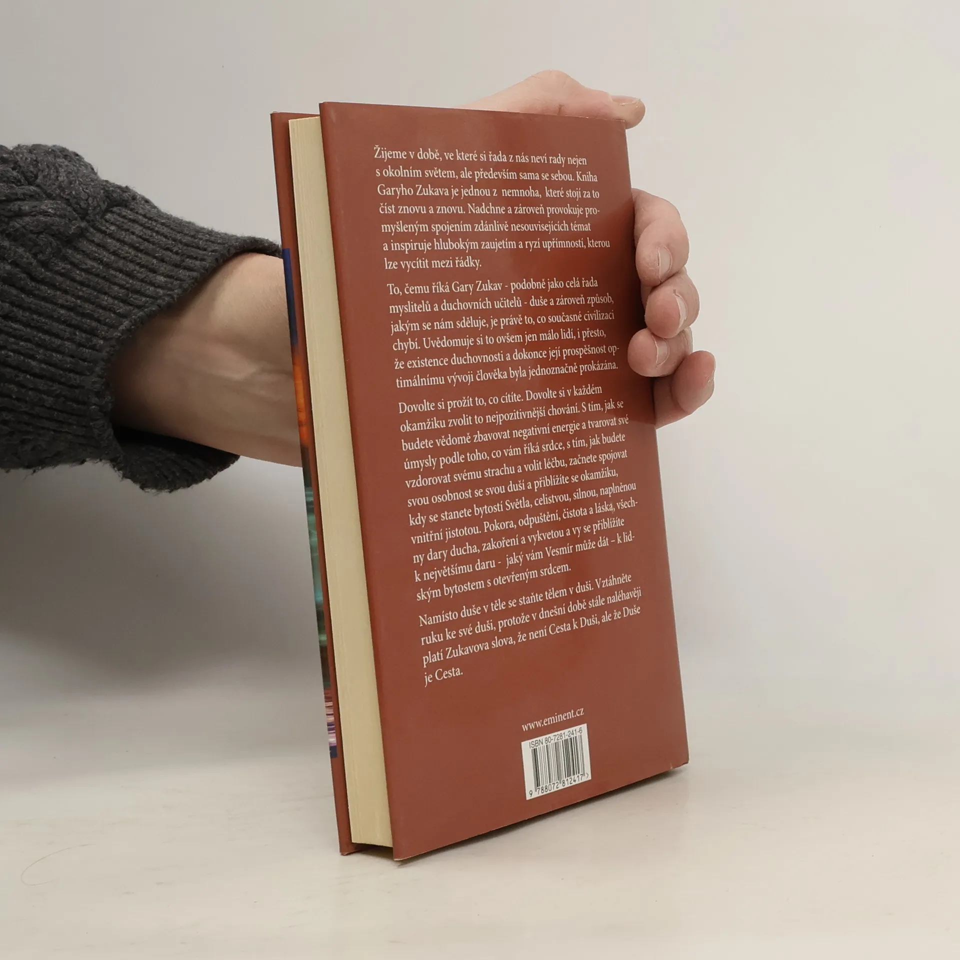 Žijeme v době, ve které si řada z nás neví rady nejen s okolním světem, ale především sama se sebou. Kniha Garyho Zukava je jednou z nemnoha, které stojí za to číst znovu a znovu. Nadchne a zároveň provokuje promyšleným spojením zdánlivě nesouvisejících témat a inspiruje hlubokým zaujetím a ryzí upřímností, kterou lze vycítit mezi řádky. To, čemu říká Gary Zukav - podobně jako celá řada myslitelů a duchovních učitelů - duše a zároveň způsob, jakým se nám sděluje, je právě to, co současné civilizaci chybí. Uvědomuje si to ovšem jen málo lidí, i přesto, že existence duchovnosti a dokonce její prospěšnost optimálnímu vývoji člověka byla jednoznačně prokázána. Dovolte si prožít to, co cítíte. Dovolte si v každém okamžiku zvolit to nejpozitivnější chování. S tím, jak se budete vědomě zbavovat negativní energie a tvarovat své úmysly podle toho, co vám říká srdce, s tím, jak budete vzdorovat svému strachu a volit léčbu, začnete spojovat svou osobnost se svou duší a přiblížíte se okamžiku, kdy se stanete bytostí Světla, celistvou, silnou, naplněnou vnitřní jistotou. Pokora, odpuštění, čistota a láska, všechny dary ducha, zakoření a vykvetou a vy se přiblížíte k největšímu daru - jaký vám Vesmír může dát – k lidským bytostem s otevřeným srdcem. Namísto duše v těle se staňte tělem v duši. Vztáhněte ruku ke své duši, protože v dnešní době stále naléhavěji platí Zukalova slova, že není Cesta k Duši, ale že Duše je Cesta.