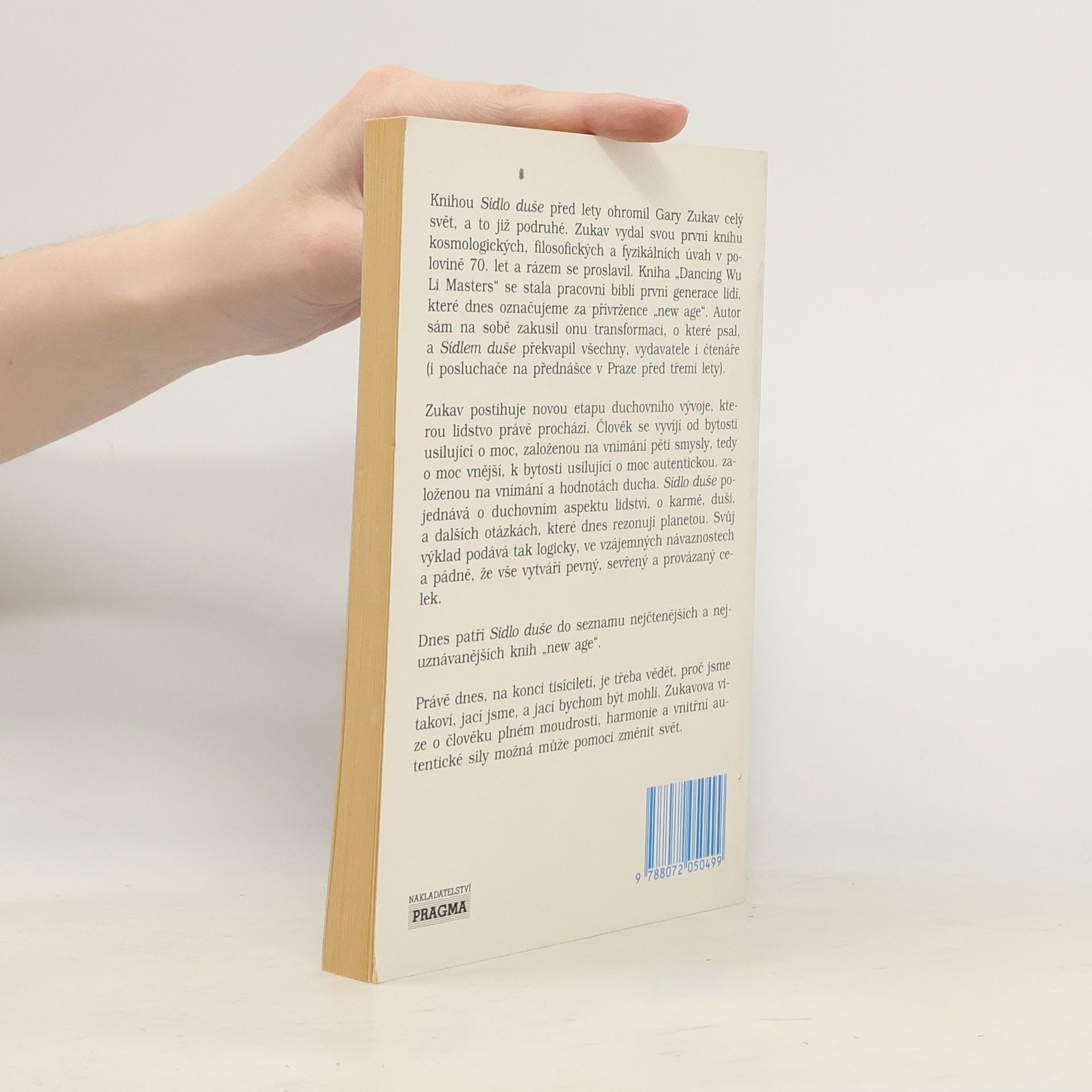 Žijeme v době, ve které si řada z nás neví rady nejen s okolním světem, ale především sama se sebou. Kniha Garyho Zukava je jednou z nemnoha, které stojí za to číst znovu a znovu. Nadchne a zároveň provokuje promyšleným spojením zdánlivě nesouvisejících témat a inspiruje hlubokým zaujetím a ryzí upřímností, kterou lze vycítit mezi řádky. To, čemu říká Gary Zukav - podobně jako celá řada myslitelů a duchovních učitelů - duše a zároveň způsob, jakým se nám sděluje, je právě to, co současné civilizaci chybí. Uvědomuje si to ovšem jen málo lidí, i přesto, že existence duchovnosti a dokonce její prospěšnost optimálnímu vývoji člověka byla jednoznačně prokázána. Dovolte si prožít to, co cítíte. Dovolte si v každém okamžiku zvolit to nejpozitivnější chování. S tím, jak se budete vědomě zbavovat negativní energie a tvarovat své úmysly podle toho, co vám říká srdce, s tím, jak budete vzdorovat svému strachu a volit léčbu, začnete spojovat svou osobnost se svou duší a přiblížíte se okamžiku, kdy se stanete bytostí Světla, celistvou, silnou, naplněnou vnitřní jistotou. Pokora, odpuštění, čistota a láska, všechny dary ducha, zakoření a vykvetou a vy se přiblížíte k největšímu daru - jaký vám Vesmír může dát – k lidským bytostem s otevřeným srdcem. Namísto duše v těle se staňte tělem v duši. Vztáhněte ruku ke své duši, protože v dnešní době stále naléhavěji platí Zukalova slova, že není Cesta k Duši, ale že Duše je Cesta.