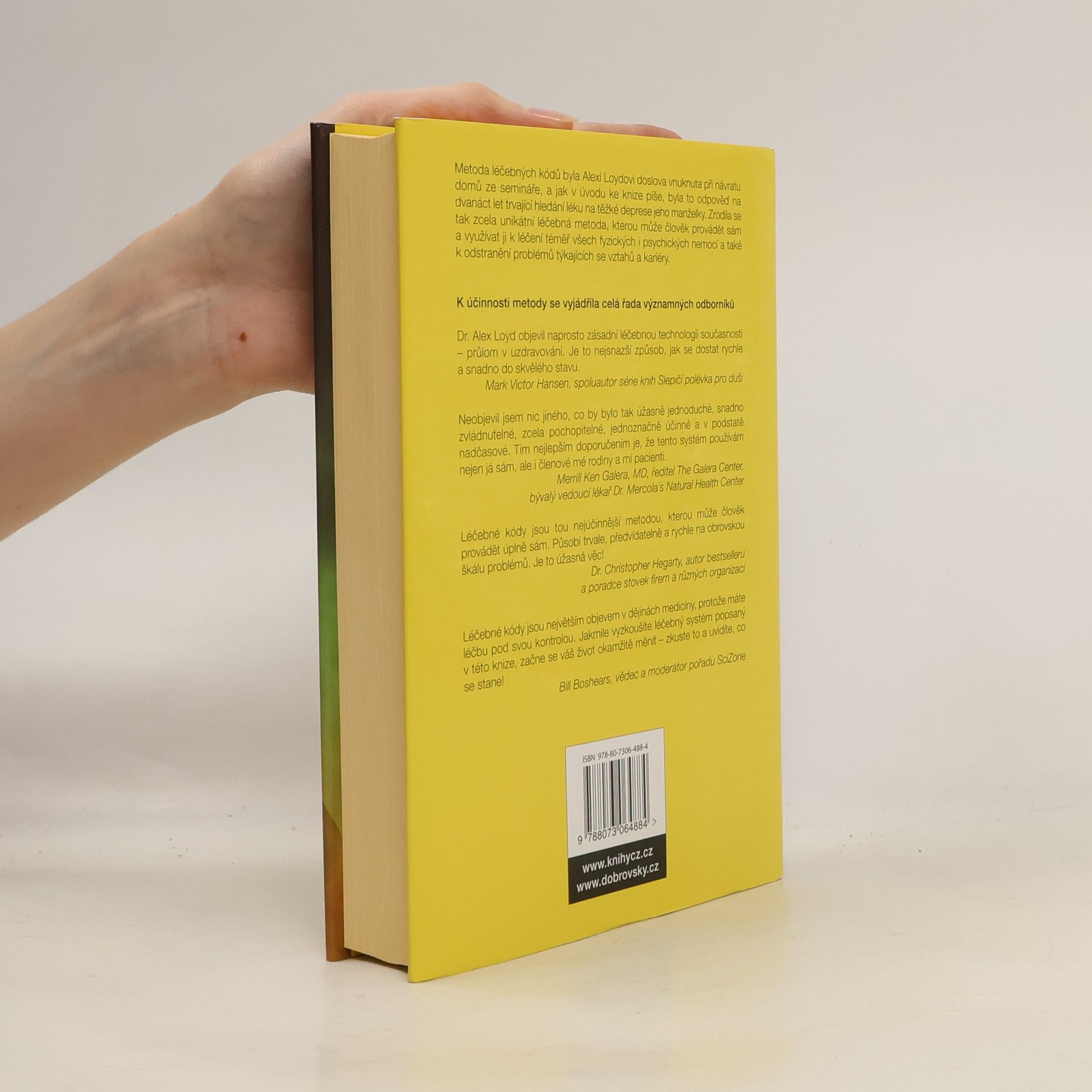 Metoda léčebných kódů byla Alexi Loydovi doslova vnuknuta při návratu domů ze semináře, a jak sám v úvodu knihy píše, byla to odpověď na dvanáct let trvající hledání léku na těžké deprese jeho manželky. Zrodila se tak zcela unikátní léčebná metoda, kterou může člověk provádět sám a využívat ji k léčení téměř všech fyzických i psychických nemocí a také k odstranění problémů týkající se vztahů a kariéry. Alex Loyd popisuje tuto metodu velmi svěžím a snadno pochopitelným způsobem a její účinnost dokládá výpověďmi lidí, jimž zcela zásadně změnila život. Systém léčebných kódů vychází z kvantové fyziky a jeho základem je odstranění problému přímo v jeho zdroji, nikoli pouhých symptomů. Je to metoda snadná a její základní cvičení trvá pouhých šest minut, ale svědectví mnoha klientů Dr. Loyda jasně dokazují, že i za tak krátkou chvíli se člověk může zbavit stresu vyvolaného destruktivními buněčnými vzpomínkami, jež způsobují vznik různých nemocí a dalších problémů. Stačí otevřít knihu a pustit se do toho!