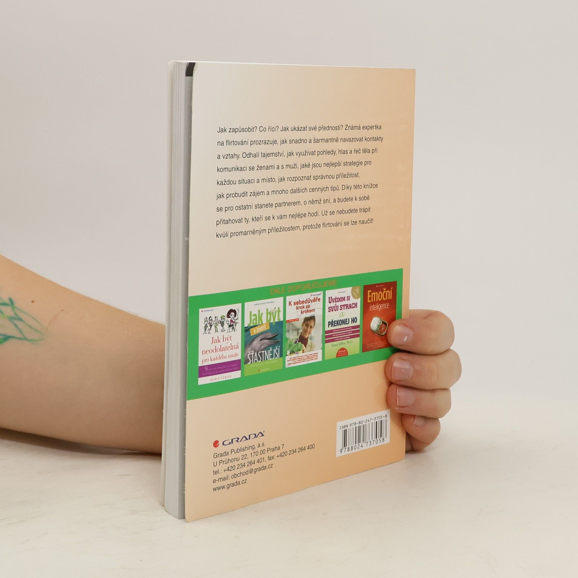 Jak zapůsobit? Co říci? Jak ukázat své přednosti? Známá expertka na flirtování prozrazuje, jak snadno a šarmantně navazovat kontakty a vztahy. Odhalí tajemství, jak využívat pohledy, hlas a řeč těla při komunikaci se ženami a s muži, jaké jsou nejlepší strategie pro každou situaci a místo, jak rozpoznat správnou příležitost, jak probudit zájem a mnoho dalších cenných tipů. Díky této knížce se pro ostatní stanete partnerem, o němž sní, a budete k sobě přitahovat ty, kteří se k vám nejlépe hodí. Už se nebudete trápit kvůli promarněným příležitostem, protože flirtování se lze naučit!