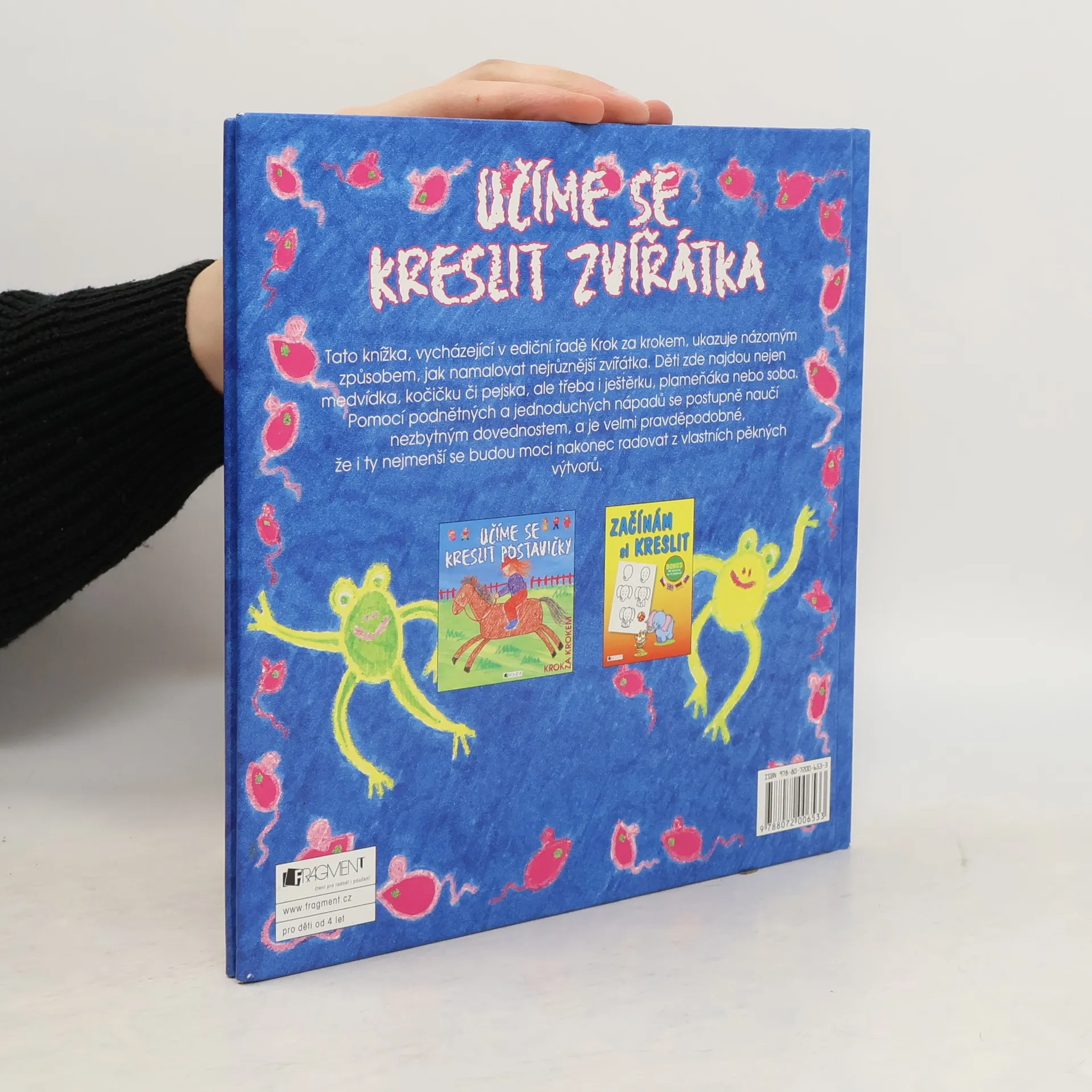 (Dotisky v roce 2003, 2004 a 2007) Knížka Učíme se kreslit zvířátka, vycházející v ediční řadě Krok za krokem, ukazuje dětem názornou cestou, jak namalovat nejrůznější zvířátka. Děti zde najdou nejen medvídka, kočičku či pejska, ale třeba i ještěrku, plameňáka nebo soba. Pomocí podnětných a jednoduchých nápadů se postupně naučí nezbytným dovednostem, a je velmi pravděpodobné, že i ty nejmenší se budou moci nakonec radovat z vlastních pěkných výtvorů.