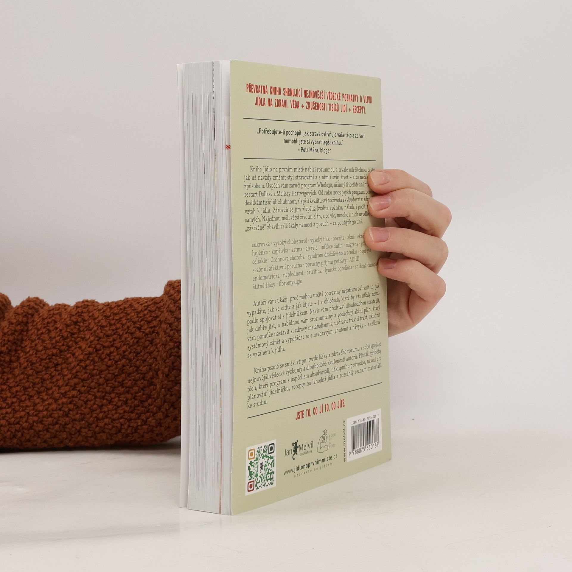 Jídlo na prvním místě není řadová kniha o paleodietě, tohle je Melvilem pečlivě zvolený vstupní titul nabízející skutečnou životní změnu. Že nemáte tušení, co to je paleodieta? Všichni víme, že jídlo ovlivňuje kvalitu našeho života – ale jak velkou moc vlastně má? Melissa a Dallas vás přesvědčí, že mimořádnou! Jídlo na prvním místě je přehledný, čtivý a srozumitelný návod, díky kterému konečně pochopíte vzájemné reakce inzulínu, leptinu, kortizolu a glukagonu. Autoři vám na podkladě vědeckých výzkumů vysvětlí fakt, proč sacharidy v naší stravě nejsou tím nejpříznivějším palivem a že paleodieta je nejlepší způsob, jak je nahradit. Autoři tvrdí, že už během 30 dnů po změně stravovacího plánu sestaveného podle jejich instrukcí dochází ke zlepšení stavu mnoha chronických, obtížně léčitelných onemocnění, jako jsou cukrovka, lupénka, Crohnova choroba, endometriáza, ekzémy a dalších. Množství receptů a tipů je doplněno vysvětlením, co jak na jednotlivá jídla reaguje naše tělo. Sympatičtí autoři vás postupně a s humorem převedou k zdravým návykům, díky nimž dochází ke zlepšení stavu celého těla, hormonální rovnováze, ústupu zažívacích obtíží a redukci zánětlivých procesů. Hartwigovi jsou tvrďáci. 30 dní jejich kůry je velmi náročný měsíc, ale jak sami říkají, je to pro vaše dobro: "Neodvažujte se namítat, že je to těžké. Skoncovat s heroinem je těžké. Porazit rakovinu je těžké. Pít kávu bez mléka NENÍ TĚŽKÉ!" 2. aktualizované vydání