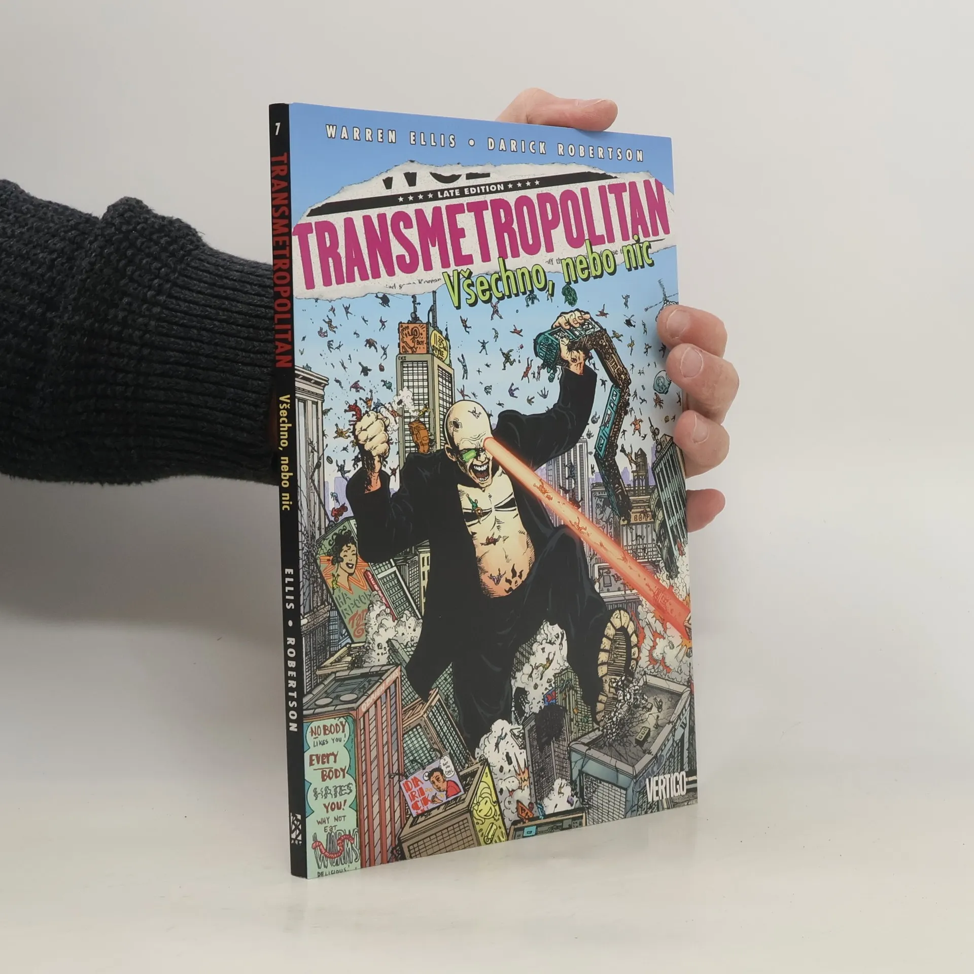 Spider bojuje se světem, který se zbláznil Zuřivý reportér Spider Jerusalem přišel o práci, o bankovní účet i o apartmán. Což ho staví do ideální pozice pro to, aby začal budovat plán na svržení samotného prezidenta Spojených států. V novém díle série Transmetropolitan od komiksové superstar Warrena Ellise přituhuje. Starý dobrý sjetý novinář s dvoubarevnými brýlemi na nose má ale v rukávu pár nabroušených es.