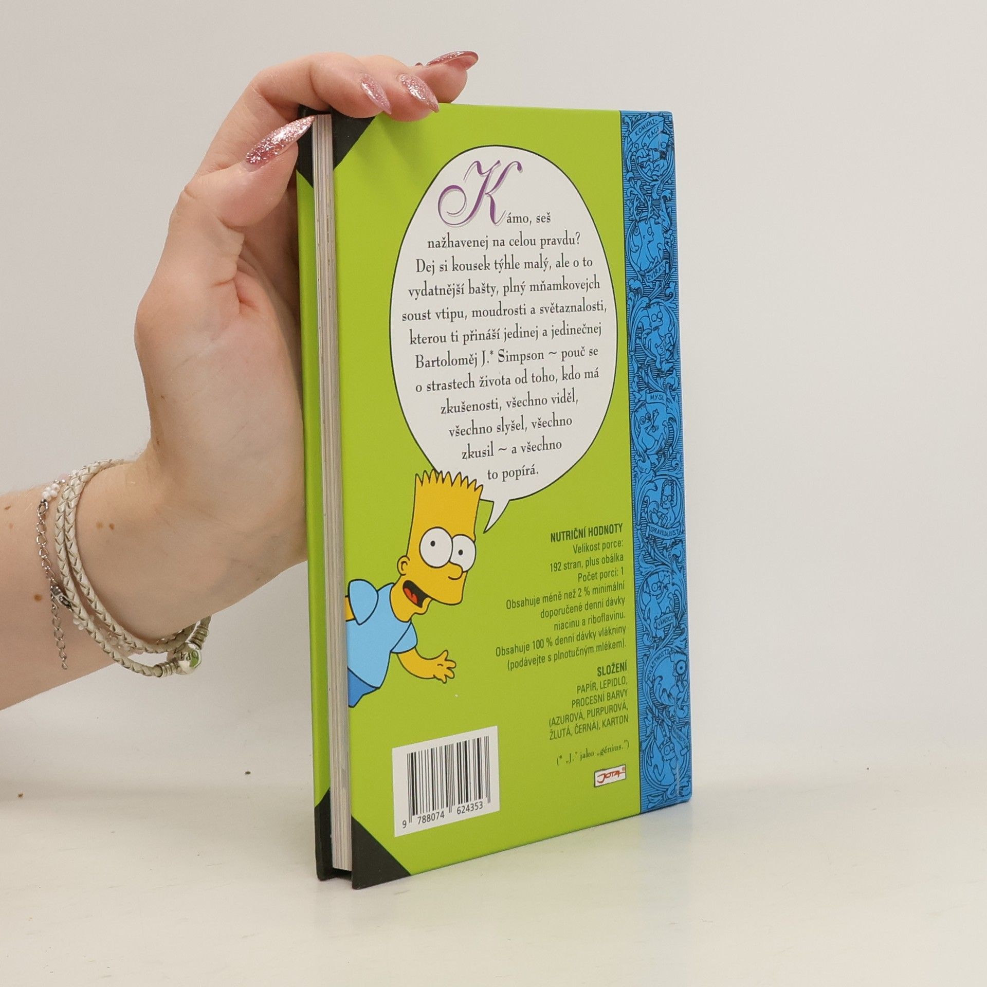 Knížka plná vypečených rad Barta Simpsona pobaví všechny ve věkové kategorii od 10 do 100 let. Nabízí rady a poučení pro všechny situace — potřebujete pro sebe urvat co největší kus večeře? Potřebujete si zpestřit nudné každodenní koupání? Nemáte tušení, jakou hodnotu má ve škole váš oběd? Nevíte, jak sbalit holku? Jak přelstít rodiče, abyste nemuseli v osm do postele? Jak z nich vytáhnout co nejvíc peněz? Jak se stát transkontinentálním výtržníkem? Jaký je opravdový smysl života? Bart Simpson si ví rady v každé situaci a rád se se čtenáři o své zkušenosti podělí.