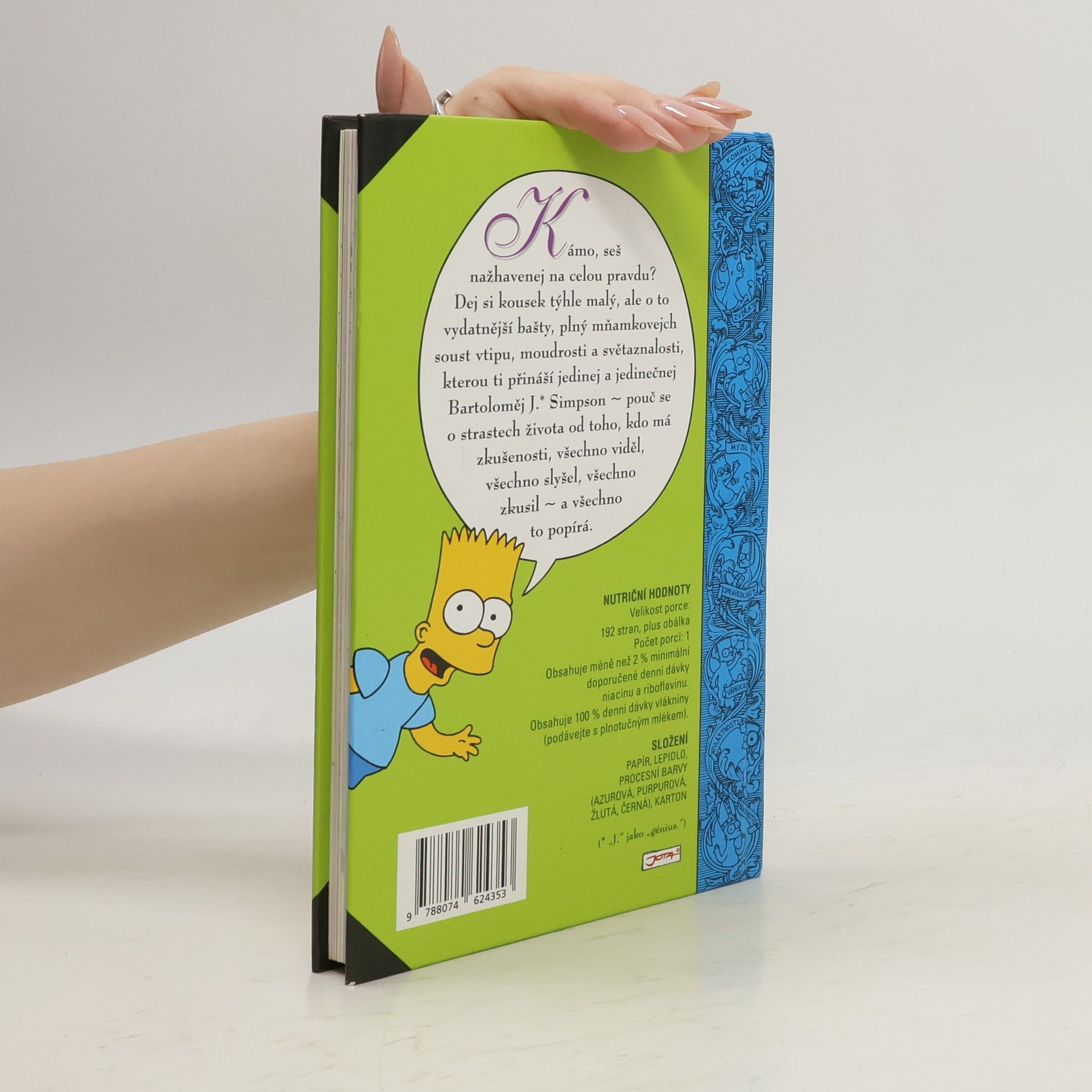 Knížka plná vypečených rad Barta Simpsona pobaví všechny ve věkové kategorii od 10 do 100 let. Nabízí rady a poučení pro všechny situace — potřebujete pro sebe urvat co největší kus večeře? Potřebujete si zpestřit nudné každodenní koupání? Nemáte tušení, jakou hodnotu má ve škole váš oběd? Nevíte, jak sbalit holku? Jak přelstít rodiče, abyste nemuseli v osm do postele? Jak z nich vytáhnout co nejvíc peněz? Jak se stát transkontinentálním výtržníkem? Jaký je opravdový smysl života? Bart Simpson si ví rady v každé situaci a rád se se čtenáři o své zkušenosti podělí.