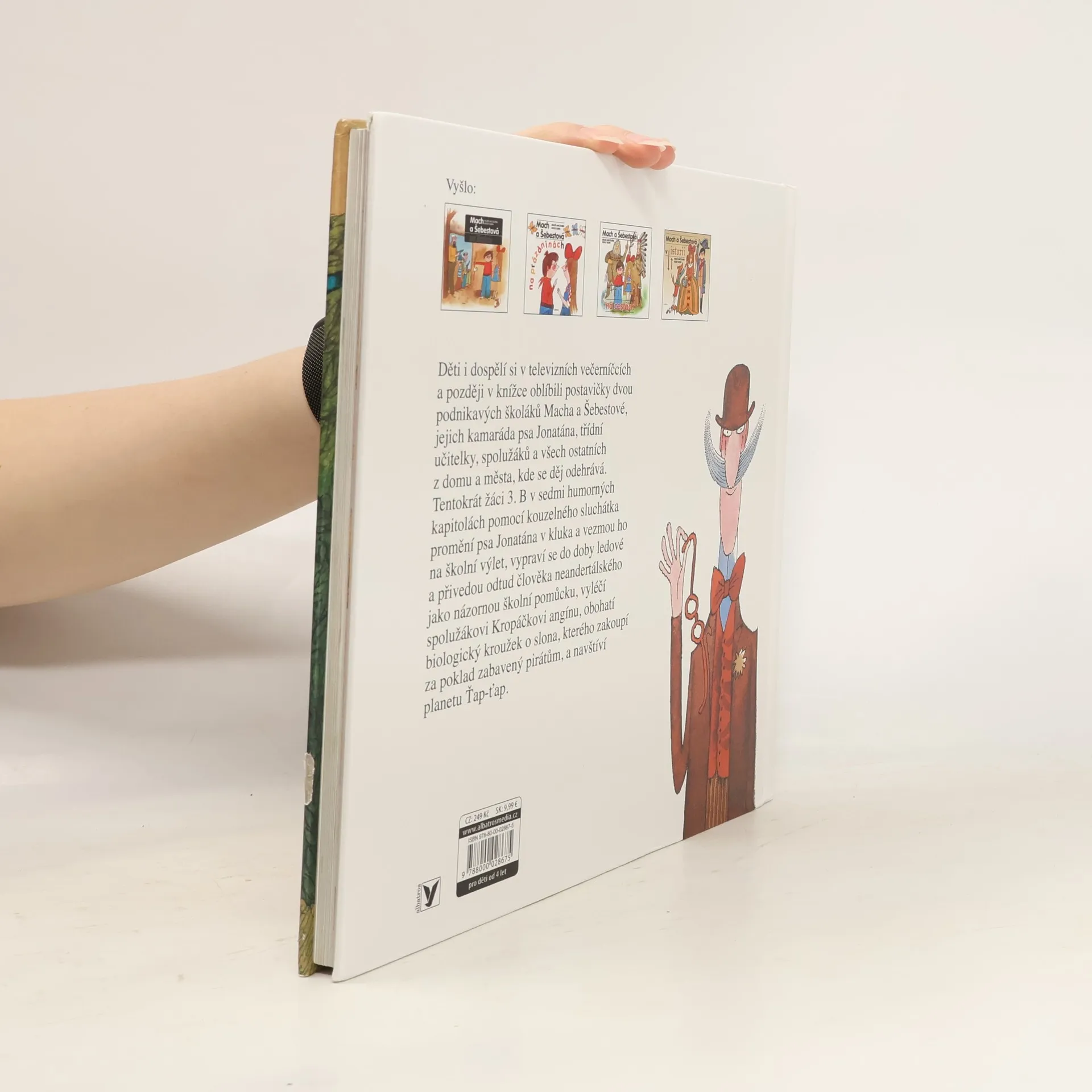 Tentokrát žáci 3. B Mach a Šebestová v sedmi humorných kapitolách pomocí kouzelného sluchátka promění psa Jonatána v kluka a vezmou ho na školní výlet, vypraví se do doby ledové a přivedou odtud člověka neandrtálského jako názornou školní pomůcku, vyléčí spolužákovi Kropáčkovi angínu, obohatí biologický kroužek o slona, kterého zakoupí za poklad zabavený pirátům a navštíví planetu Ťap-ťap.