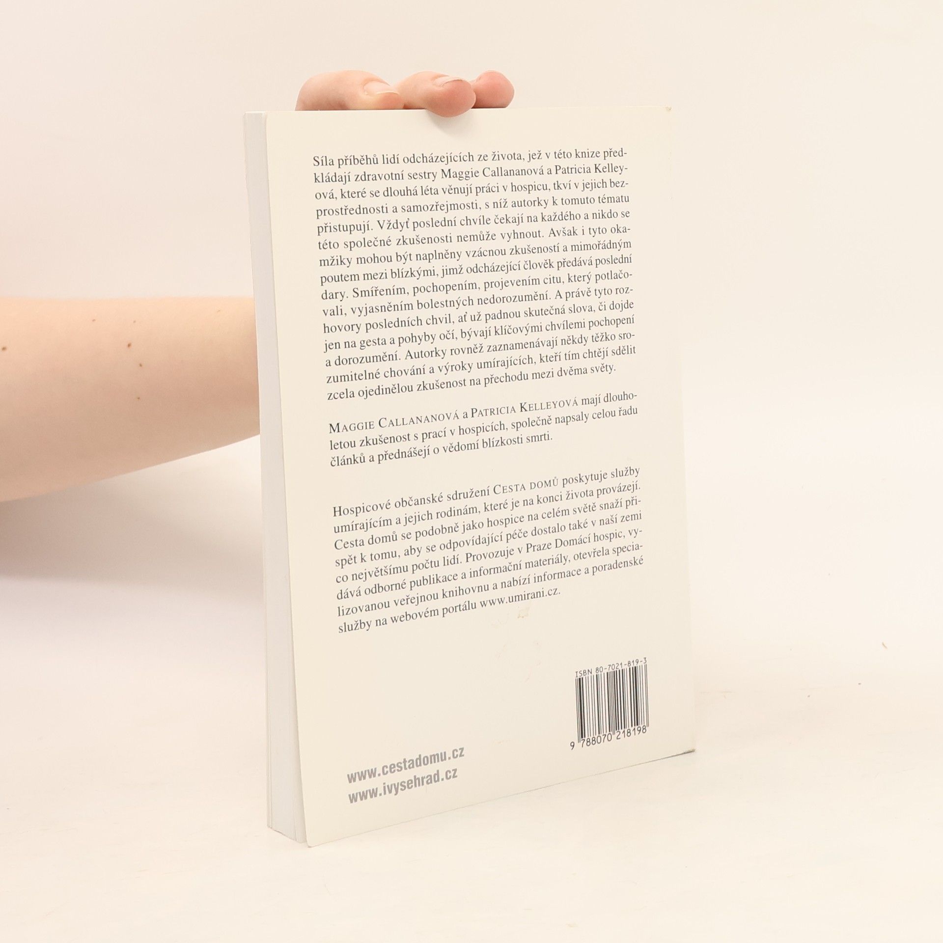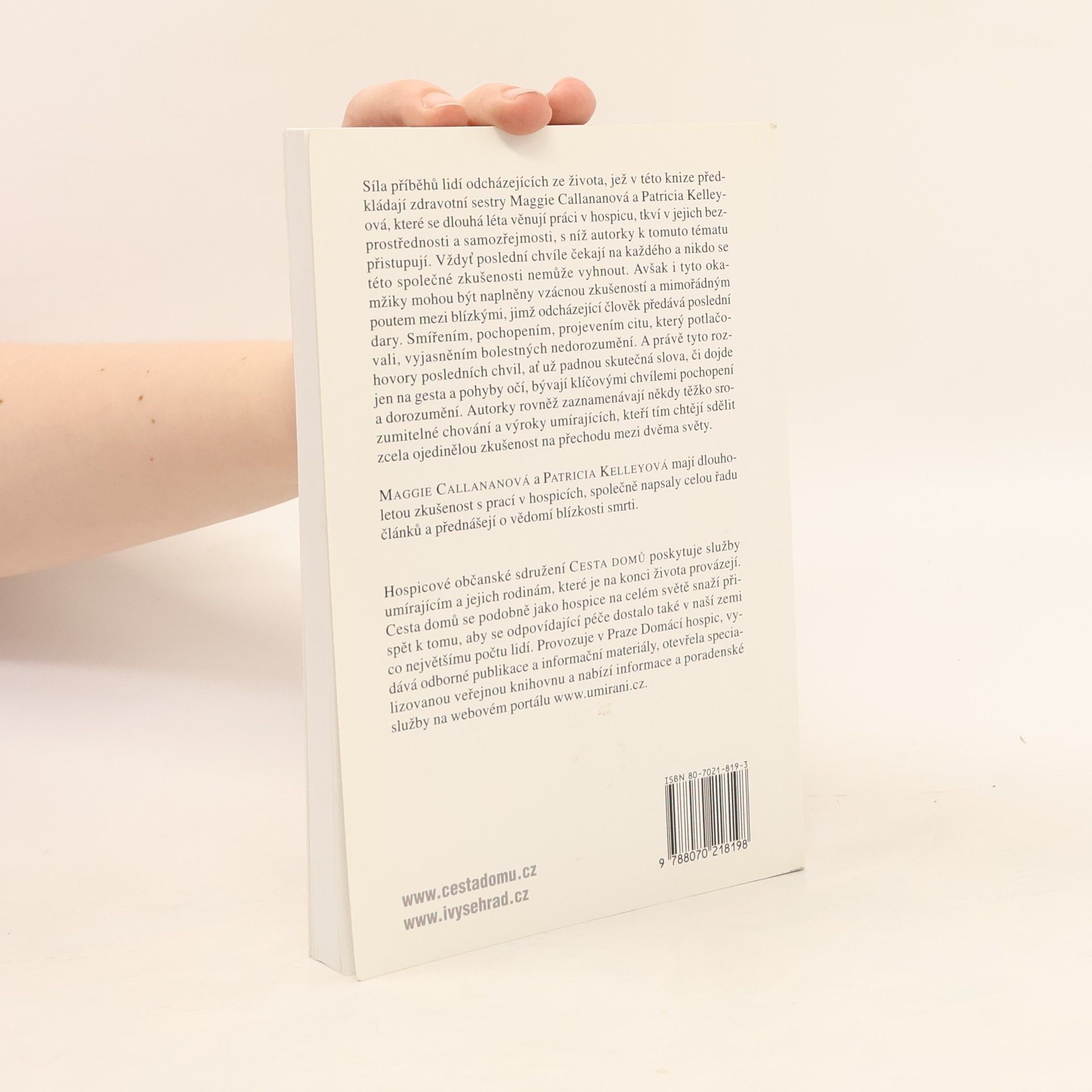 Síla příběhů lidí odcházejících ze života, jež v této knize předkládají zdravotní sestry Maggie Callananová a Patricia Kelleyová, které se dlouhá léta věnují práci v hospicu, tkví v jejich bezprostřednosti a samozřejmosti, s níž autorky k tomuto tématu přistupují. Vždyť poslední chvíle čekají na každého a nikdo se této společné zkušenosti nemůže vyhnout. Avšak i tyto okamžiky mohou být naplněny vzácnou zkušeností a mimořádným poutem mezi blízkými, jimž odcházející člověk předává poslední dary. Smířením, pochopením, projevením citu, který potlačovali, vyjasněním bolestných nedorozumění. A právě tyto rozhovory posledních chvil, ať už padnou skutečná slova, či dojde jen na gesta a pohyby očí, bývají klíčovými chvílemi pochopení a dorozumění. Autorky rovněž zaznamenávají někdy těžko srozumitelné chování a výroky umírajících, kteří tím chtějí sdělit zcela ojedinělou zkušenost na přechodu mezi dvěma světy.