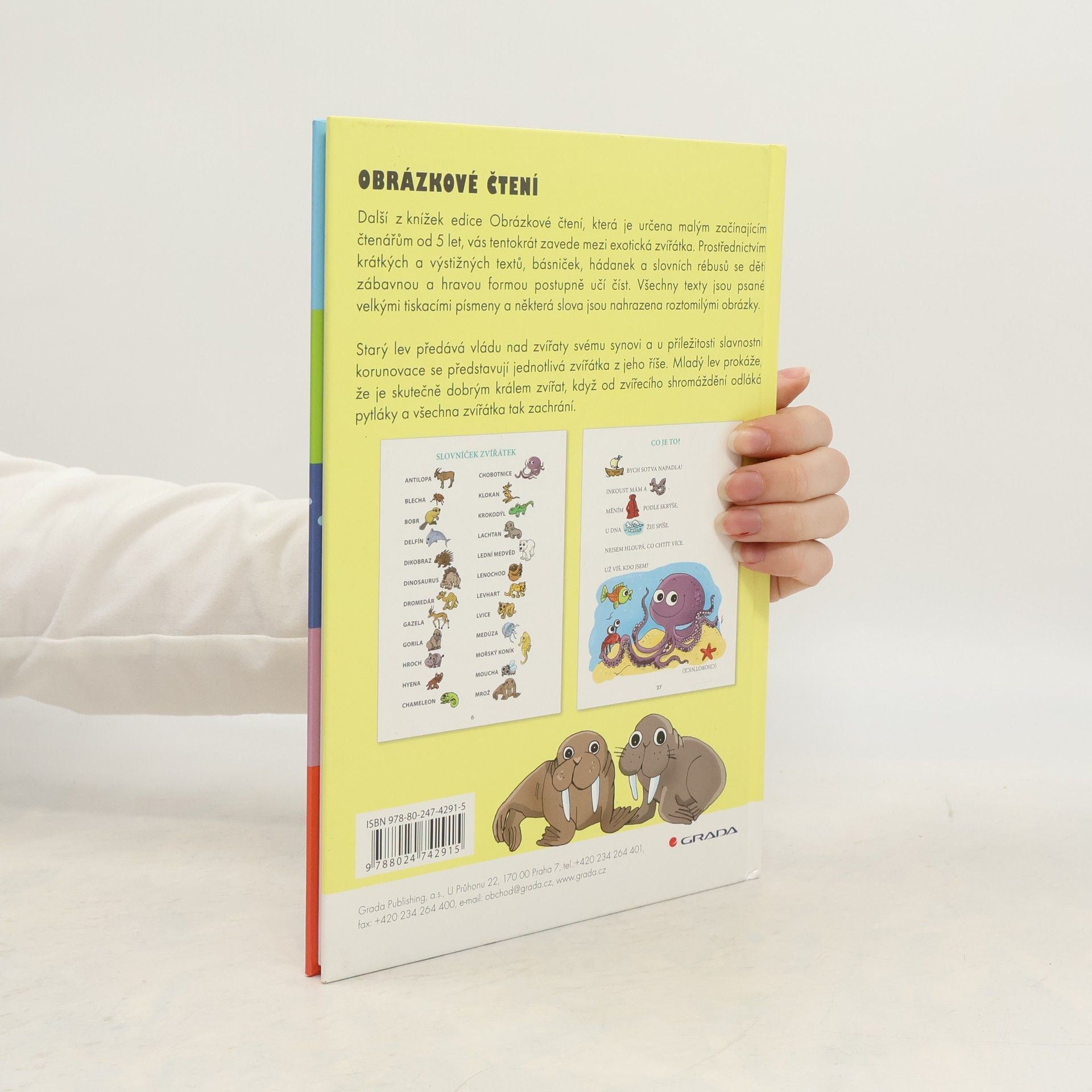 Další z knížek edice Obrázkové čtení, která je určena malým začínajícím čtenářům od 5 let, vás tentokrát zavede mezi exotická zvířátka. Prostřednictvím krátkých a výstižných textů, básniček, hádanek a slovních rébusů se děti zábavnou a hravou formou postupně učí číst. Všechny texty jsou psané velkými tiskacími písmeny a některá slova jsou nahrazena roztomilými obrázky. Starý lev předává vládu nad zvířaty svému synovi a u příležitosti slavnostní korunovace se představují jednotlivá zvířátka z jeho říše. Mladý lev prokáže, že je skutečně dobrým králem zvířat, když od zvířecího shromáždění odláká pytláky a všechna zvířátka tak zachrání.