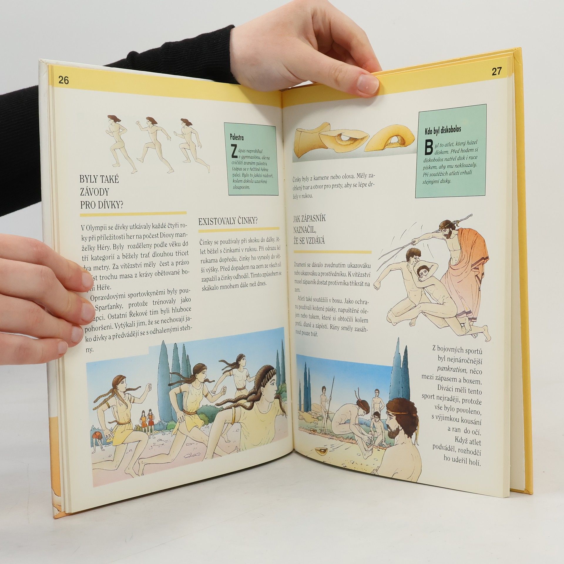Uměleckonaučná kniha z produkce pařížského nakladatelství Nathan. Ve srozumitelně napsaném textu seznamuje s životem ve starověkém Řecku. Popisuje jak probíhaly olympijské hry a jaké byly pro vítěze odměny, s čím si hrály malé řecké děti a jestli byla škola přísná, co Řekové jedli a jak chodili nakupovat.