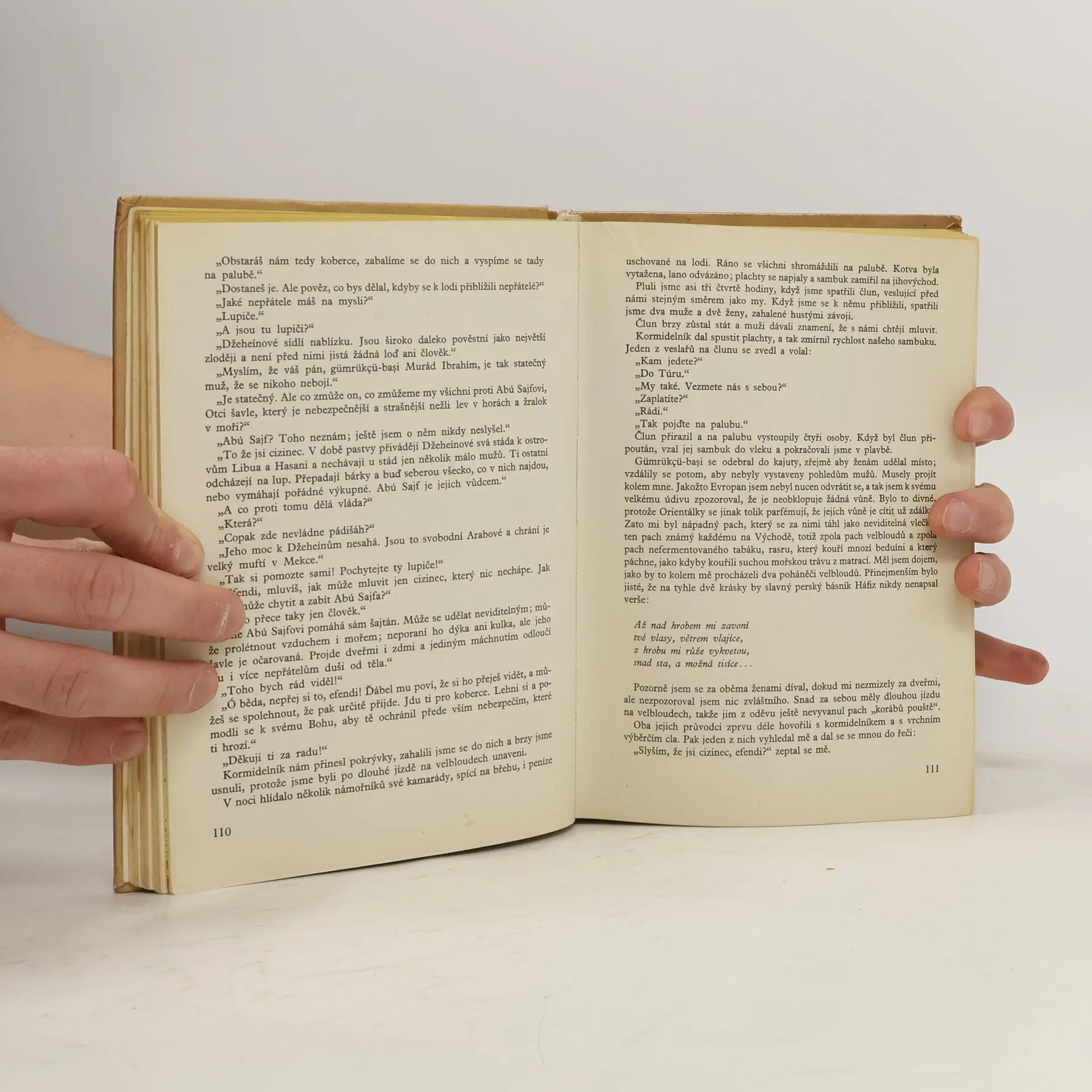 Kniha vypráví o dobrodružném putování exotickými končinami vzdáleného světadílu. Hlavní hrdina Kara ben Nemsí zdolává se svým arabským sluhou a nerozlučným přítelem Halefem všechny překážky cest. Objeví se v Alžíru a putují přes solné jezero Šot v Tunisku, prožijí dobrodružství v Egyptě, přeplují Rudé Moře, dostanou se do svatého města muslimů Mekky, projedou Arabský poloostrov až přes Perský záliv a kolem Tigridu se dostanou do Mosulu a nakonec k Jezídům - "vyznavačům ďábla", ve skutečnosti křesťanskou dodnes existující sektou. Často se ocitají v smrtelném nebezpečí a jen o vlásek z něho unikají.