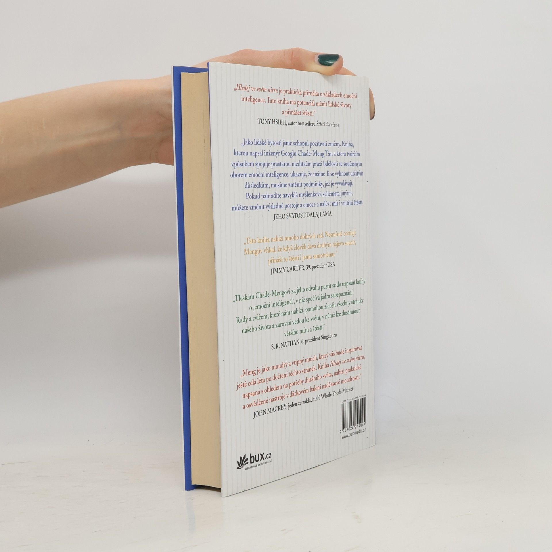 Chade-Meng Tan, jeden z prvních inženýrů firmy Google, ve svém díle Hledej ve svém nitru spojil prastarou praxi meditace bdělosti s moderním oborem emoční inteligence. Jeho zábavná a přínosná kniha je napsána jasně a srozumitelně. Cílem souboru cvičení a nástrojů, které Meng čtenáři postupně nabízí, je nejen umocnění osobního štěstí, ale i dosažení vyššího pracovního výkonu a zlepšení vztahů v osobním i profesním životě. Vážnost tématu zlehčují milé ilustrace a osobitý humor autora.