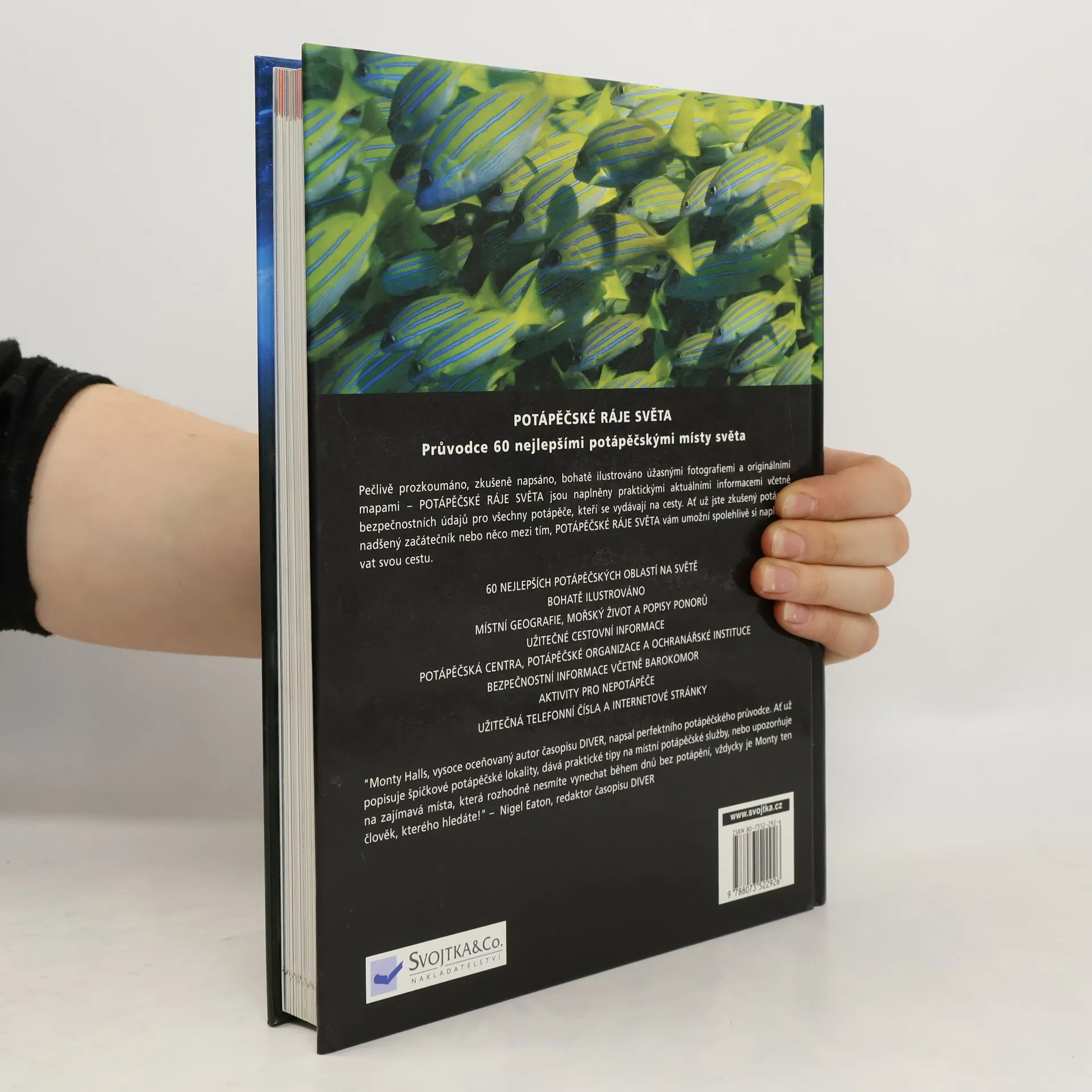Tato kniha je obsáhlým průvodcem šedesáti nejlepšími potápěčskými místy světa. U každé oblasti přináší informace o viditelnosti, teplotě vody, možnostech příjezdu na místo či vízových požadavcích. Jsou tu i podrobnosti o místopisu, podmořském životě v celé oblasti a podrobné popisy vybraných potápěčských lokalit. Každé z popisovaných míst je označeno podle obtížnosti a zakresleno na přehledné mapě okolí. Kniha je doplněna celou řadou nádherných snímků od profesionálních potápěčů.