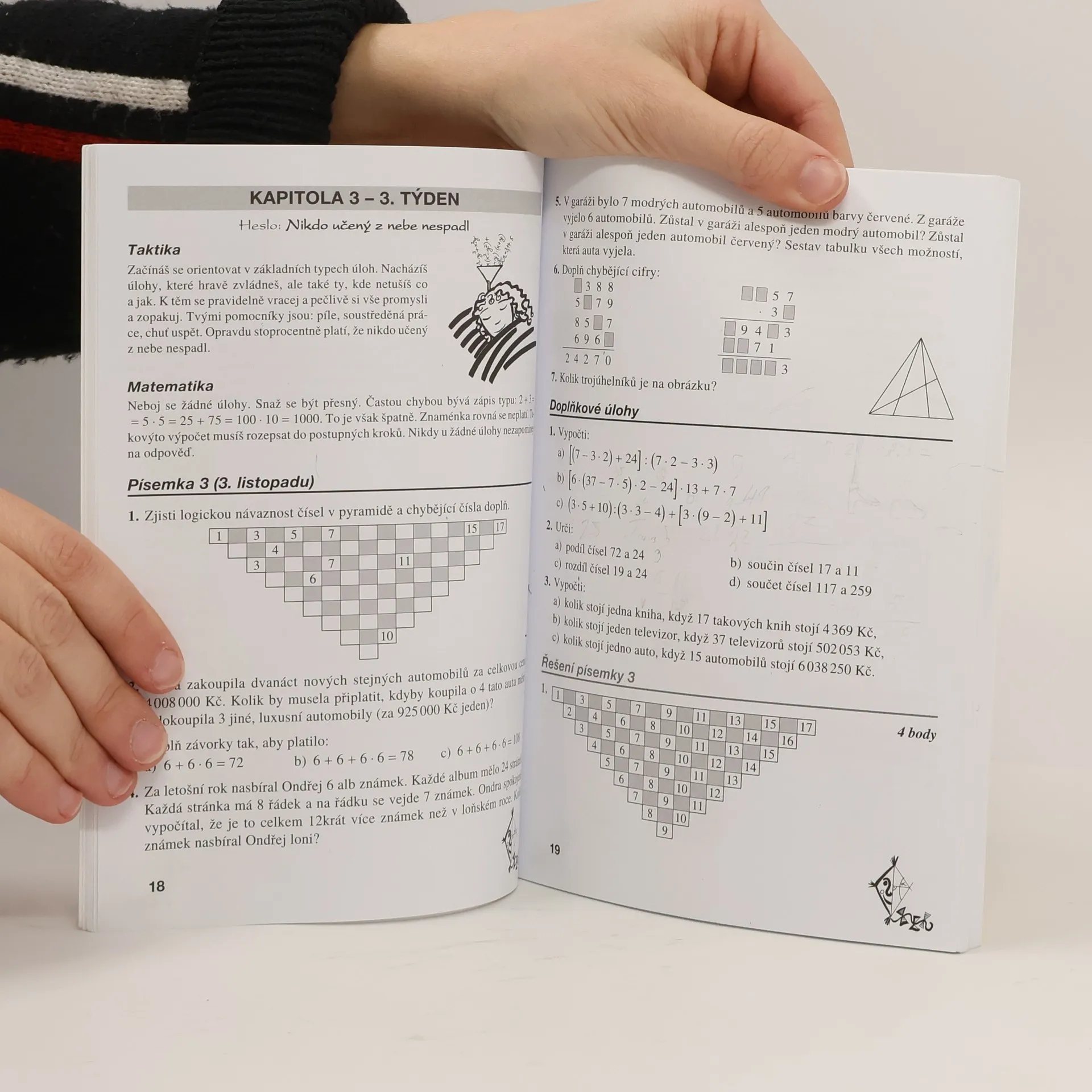 Osvědčená sbírka úloh vhodná pro samostatnou přípravu k přijímacím zkouškám na víceletá gymnázia nebo i matematickou přípravu před testováním žáků v 5. ročníku ZŠ. Krok za krokem, den po dni, týden po týdnu - pracovní plán z matematiky. Připraveno je 30 písemných prací. Řešené matematické práce s tabulkami úspěšnosti, kde zjistíte srovnání s velkým vzorkem žáků. Následující doplňkové úlohy na každý týden - od jednoduchých problémů k těžším až nejtěžším. Šance jak si postupně vybudovat matematické sebevědomí a získávat den po dni vyšší jistotu ve svém počítání. Výklad i s podrobným rozborem důležitých příkladů je jasný a srozumitelný. Žák pracuje na přípravě od října. Ten kdo začne s přípravou později, na začátku své tempo upraví tak, aby se co nejrychleji dostal na potřebnou úroveň.