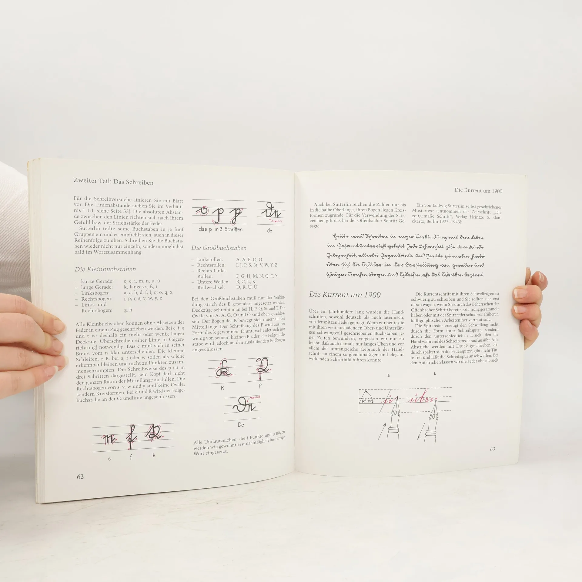 Die Kenntnis dieser Schrift ist notwendig, um ältere Briefe, Urkunden, Familienchroniken u.ä. lesen zu können. Vor 1935 waren Fraktur, Kanzlei und Kurrent gebräuchlich. Die wesentlichen Entwicklungen bis nach 1945 werden in einem Abriss vorangestellt. Im 1. Teil wird das Lesen der um 1900 gebräuchlichen Kurrent mit Hinweisen, Lesehilfen und -proben vermittelt. Im 2. Teil wird die Technik des Schreibens (inkl. Materialien) mit den Alphabeten der Kurrent, Ludwig Sütterlins Schreibschrift und Rudolf Kochs Offenbacher vorgestellt, der Formenaufbau erklärt und durch Hinweise und Übungstexte ergänzt (besonders hier wird ständig auf das noch nicht vorliegende Übungsbuch verwiesen). Schrifttafeln, Anwendungsbeispiele und Textübertragungen sind hilfreich für die - auch kalligraphische - Praxis