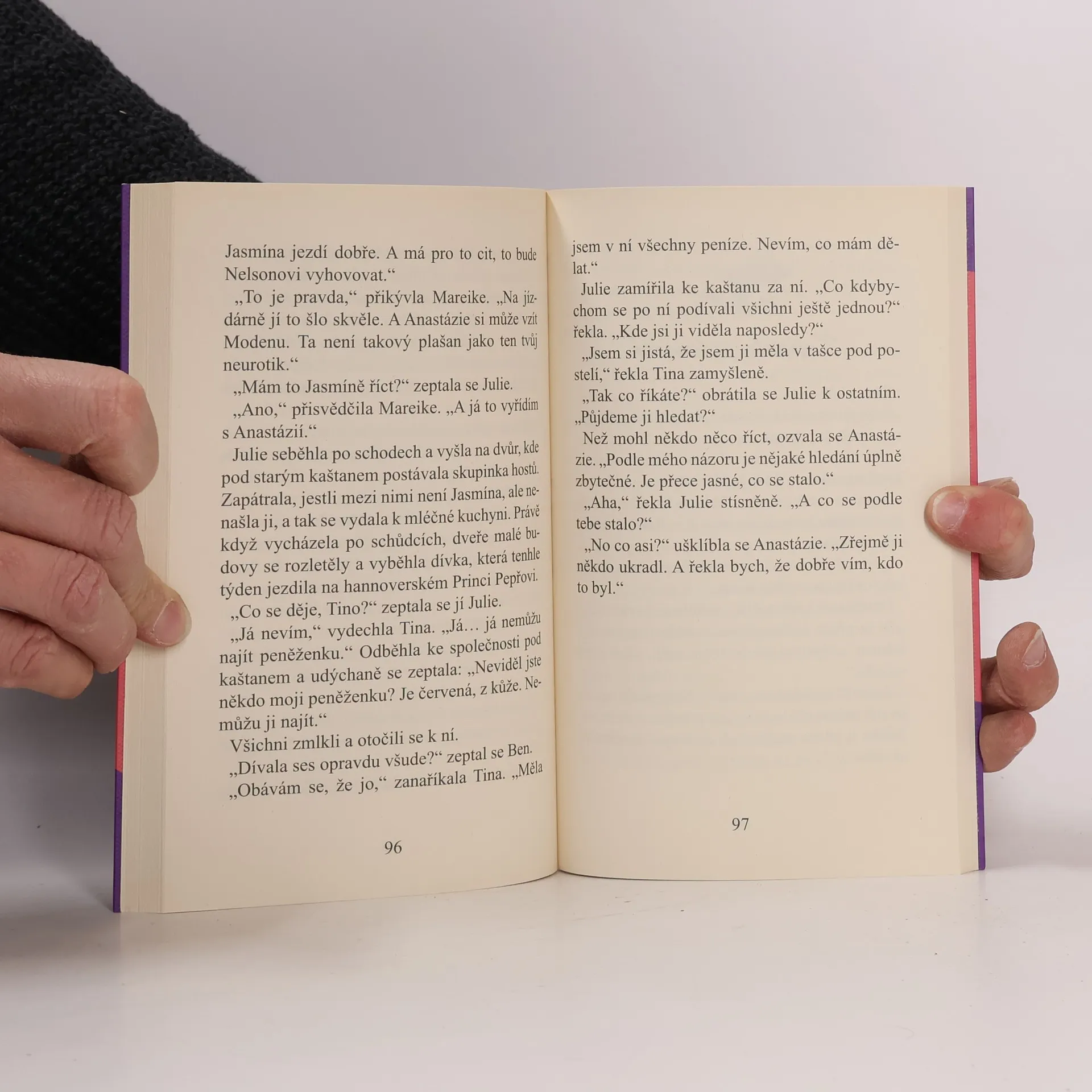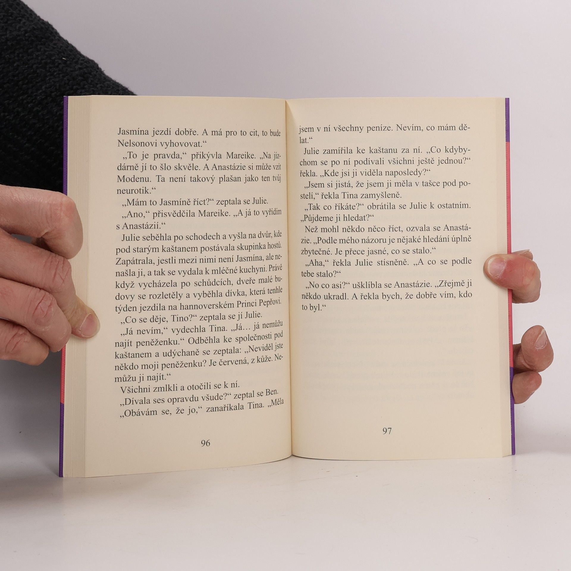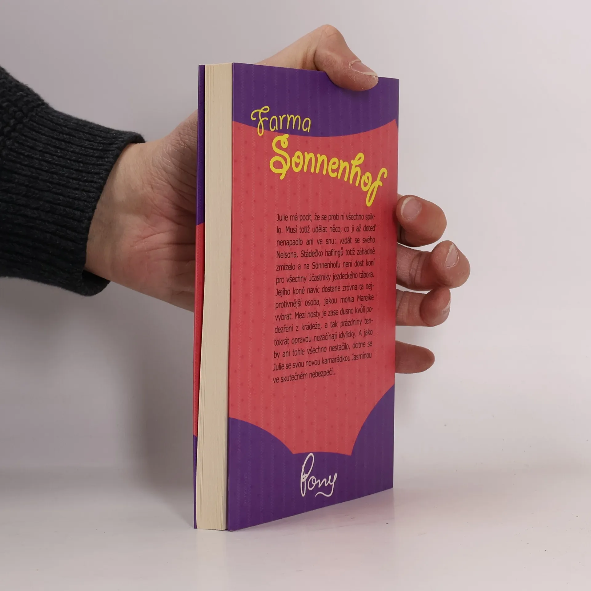 Julie má pocit, že se proti ní všechno spiklo. Musí totiž udělat něco, co ji až doteď nenapadlo ani ve snu: vzdát se svého Nelsona. Stádečko haflingů totiž záhadně zmizelo a na Sonnenhofu není dost koní pro všechny účastníky jezdeckého tábora. Jejího koně navíc dostane zrovna ta nejprotivnější osoba, jakou mohla Mareike vybrat. Mezi hosty je zase dusno kvůli podezření z krádeže, a tak prázdniny tentokrát opravdu nezačínají idylicky. A jako by ani tohle všechno nestačilo, ocitne se Julie se svou novou kamarádkou Jasmínou ve skutečném nebezpečí…