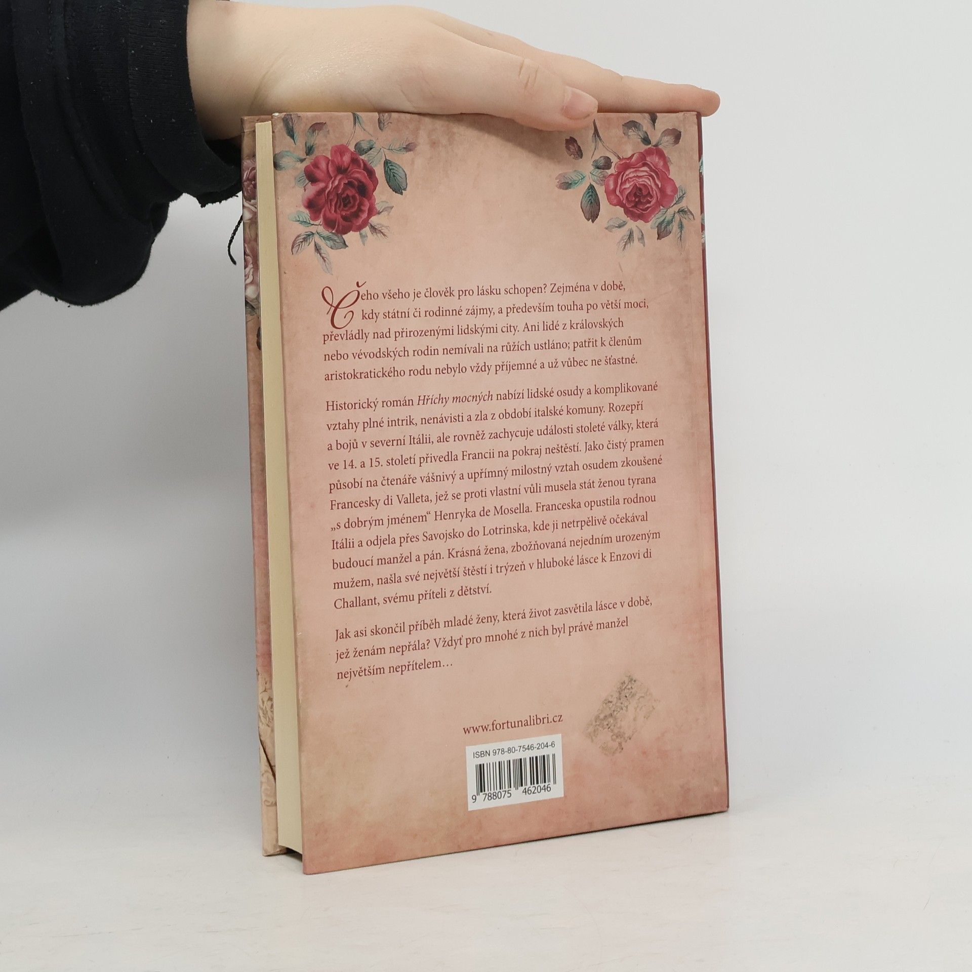 Čeho všeho je člověk pro lásku schopen? Zejména v době, kdy státní či rodinné zájmy a především touha po větší moci, převládly nad přirozenými lidskými city. Ani lidé z královských nebo vévodských rodin nemívali na růžích ustláno; patřit k členům aristokratického rodu nebylo vždy příjemné a už vůbec ne šťastné. Historický román Hříchy mocných nabízí lidské osudy a komplikované vztahy plné intrik, nenávisti a zla z období italské komuny, rozepří a bojů v severní Itálii, ale rovněž zachycuje události stoleté války. Ta ve 14. a 15. století přivedla Francii na pokraj neštěstí. Jako čistý pramen působí na čtenáře vášnivý a upřímný milostný vztah osudem zkoušené Francesky di Valleta, jež se proti vlastní vůli musela stát ženou tyrana „s dobrým jménem“ Henryka de Mosella. Franceska opustila rodnou Itálii a odjela přes Savojsko do Lotrinska, kde ji netrpělivě očekával budoucí manžel a pán. Krásná žena, zbožňovaná nejedním urozeným mužem, našla své největší štěstí i trýzeň v hluboké lásce k Enzovi di Challant, svému příteli z dětství. Jak asi skončil příběh mladé ženy, která život zasvětila lásce v době, která ženám nepřála? Vždyť pro mnohé z nich byl právě manžel největším nepřítelem…