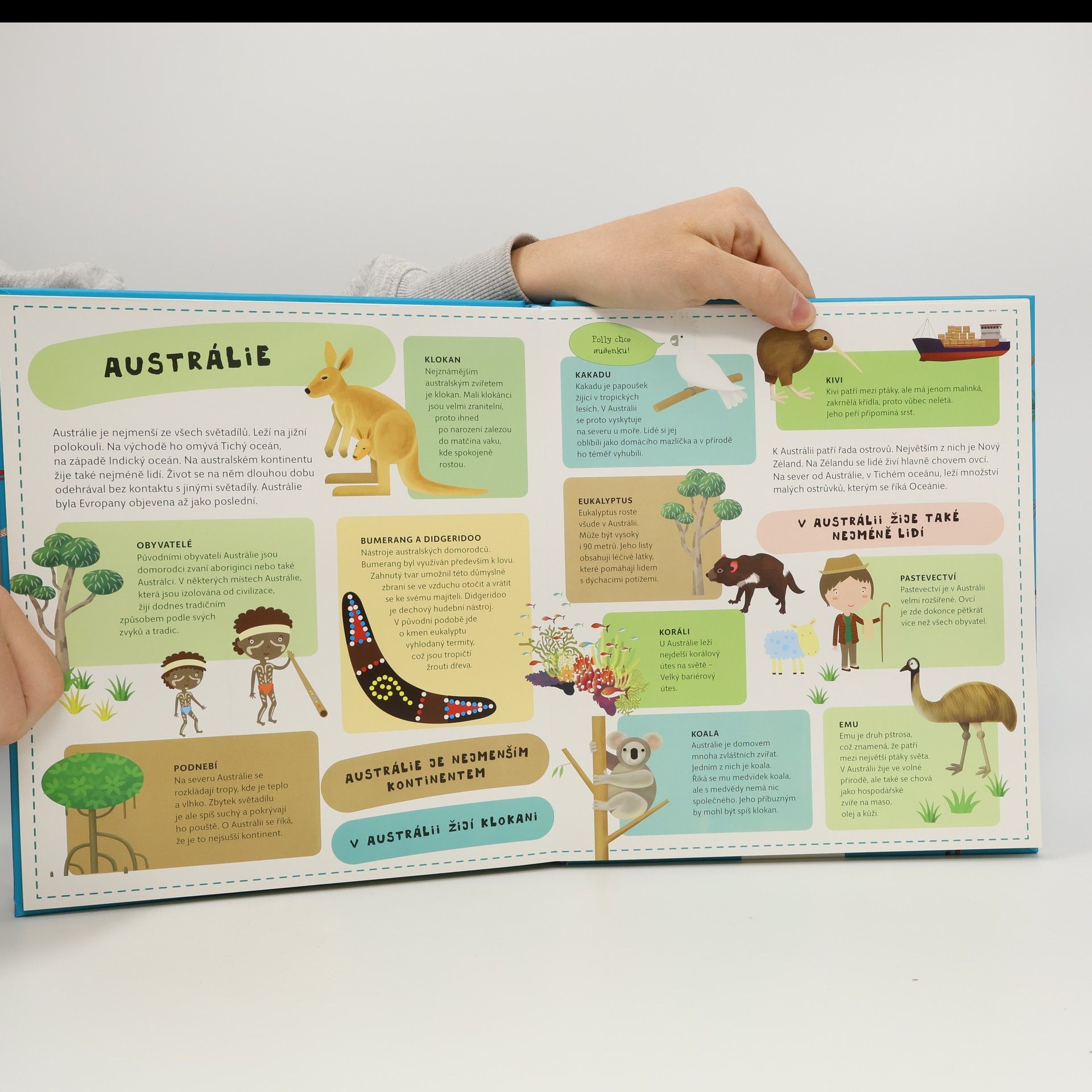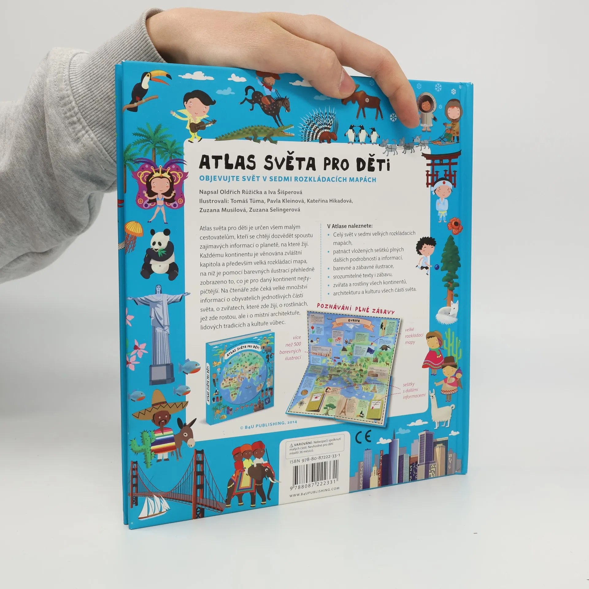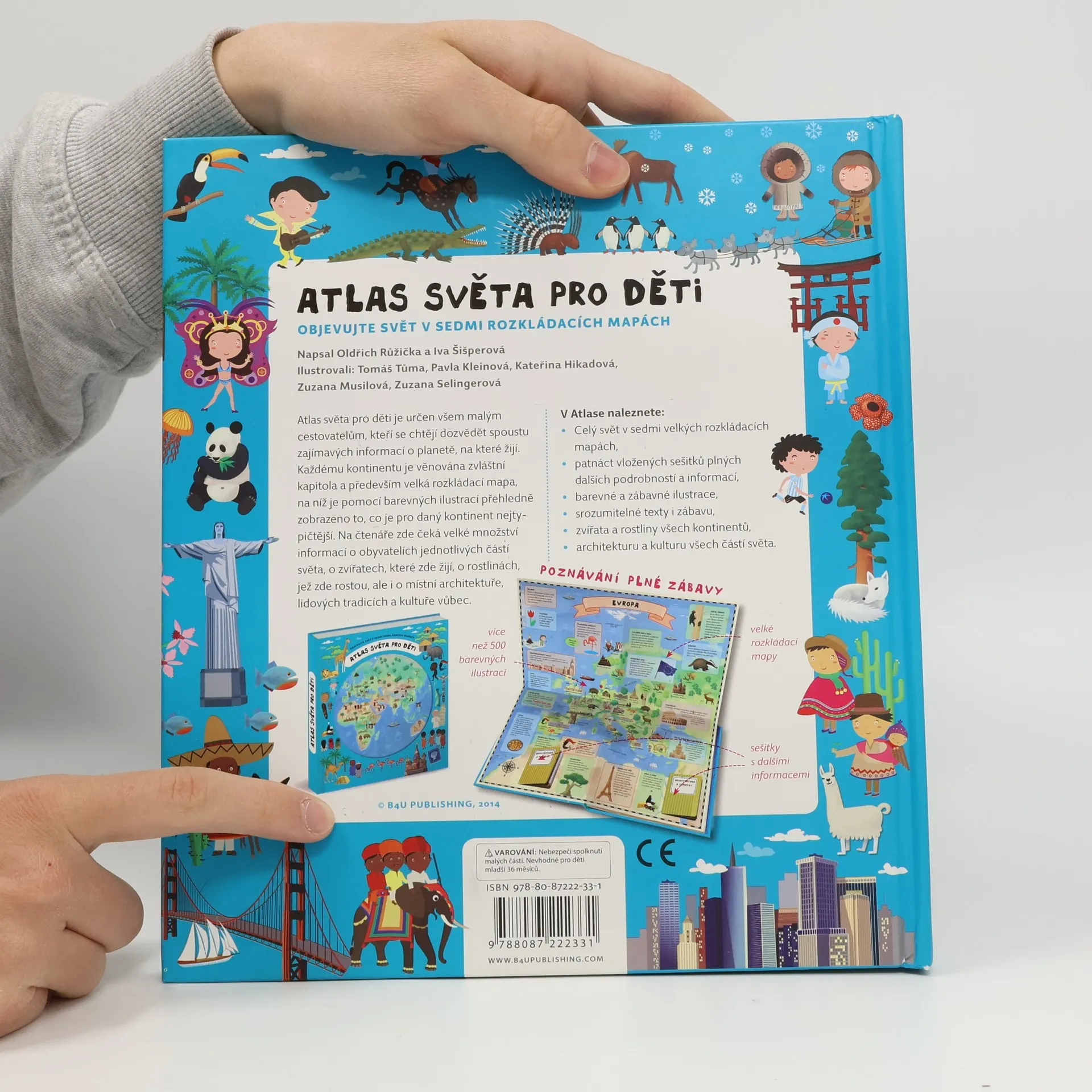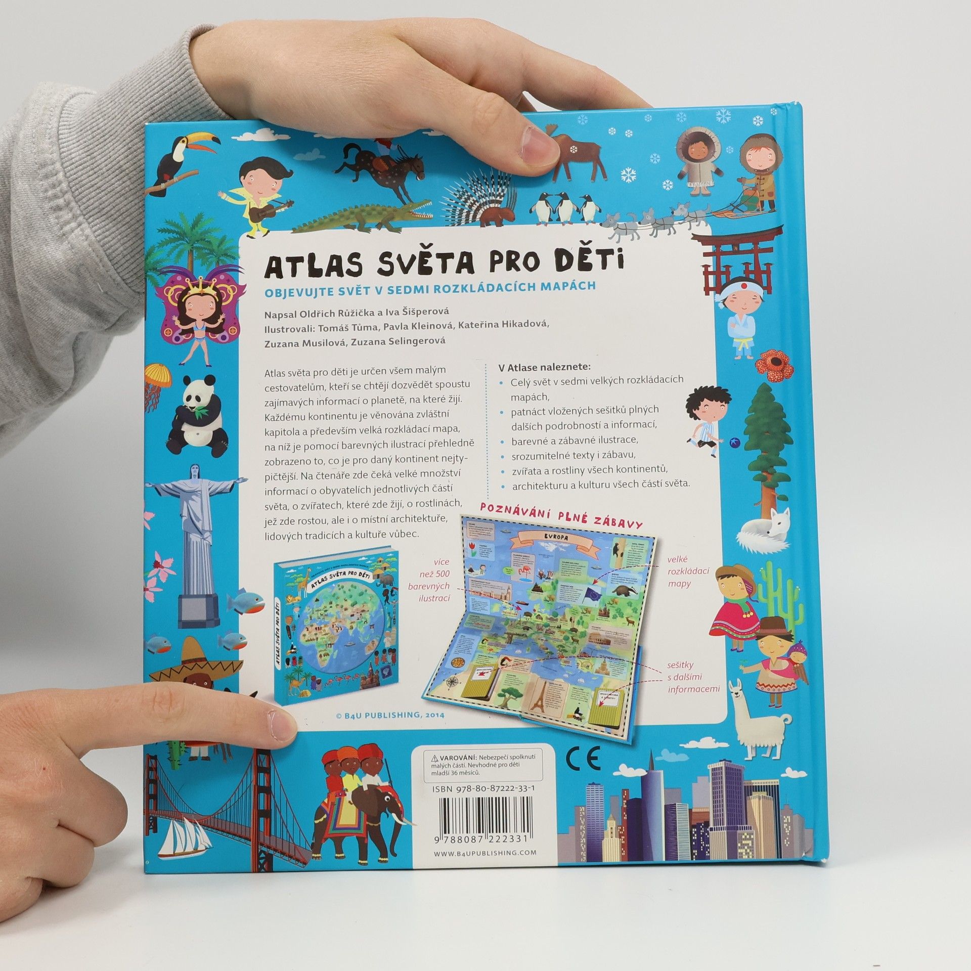 Atlas světa pro děti je určen všem malým cestovatelům, kteří se chtějí dozvědět spoustu zajímavých informací o planetě, na které žijí. Každému kontinentu je věnována zvláštní kapitola a především velká rozkládací mapa, na níž je pomoci barevných ilustrací přehledně zobrazeno to, co je pro daný kontinent nejtypičtější. Na čtenáře zde čeká velké množství informací o obyvatelích jednotlivých částí světa, o zvířatech, které zde žijí, o rostlinách, jež zde rostou, ale i o místní architektuře, lidových tradicích a kultuře vůbec. V Atlase naleznete celý svět v sedmi velkých rozkládacích mapách, patnáct vložených sešitků plných dalších podrobností a informací, barevné a zábavné ilustrace, srozumitelné texty i zábavu, zvířata a rostliny všech kontinentů, architekturu a kulturu všech částí světa.