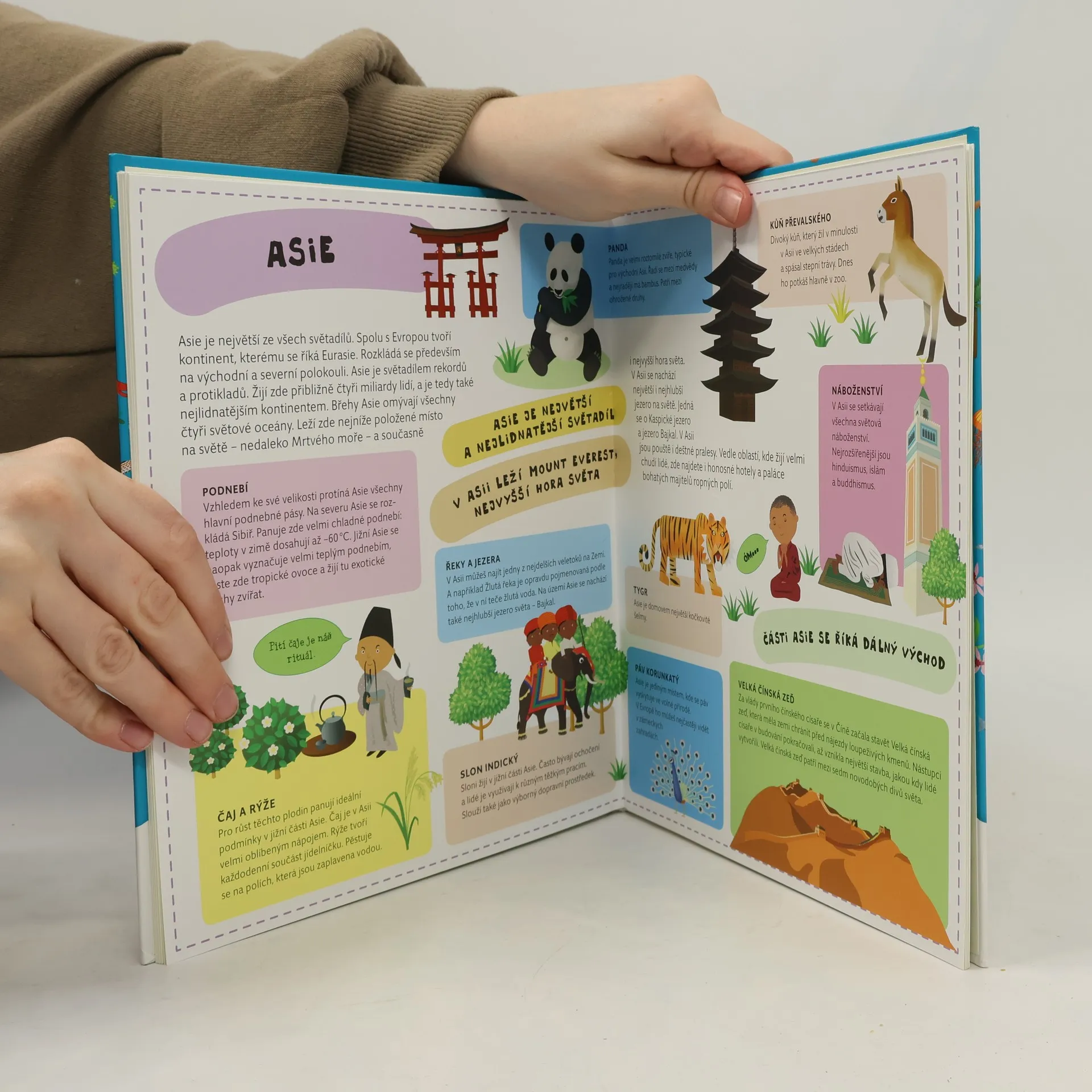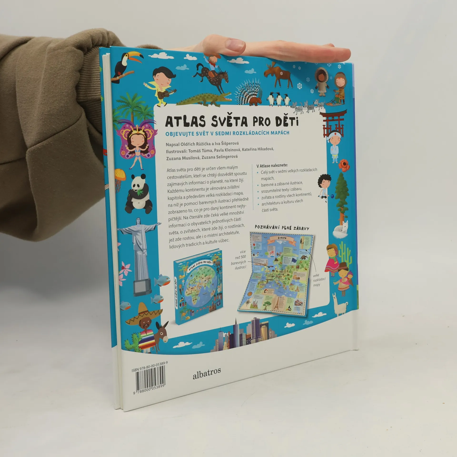 Atlas světa pro děti je určen všem malým cestovatelům, kteří se chtějí dozvědět spoustu zajímavých informací o planetě, na které žijí. Každému kontinentu je věnována zvláštní kapitola a především velká rozkládací mapa, na níž je pomoci barevných ilustrací přehledně zobrazeno to, co je pro daný kontinent nejtypičtější. Na čtenáře zde čeká velké množství informací o obyvatelích jednotlivých částí světa, o zvířatech, které zde žijí, o rostlinách, jež zde rostou, ale i o místní architektuře, lidových tradicích a kultuře vůbec. V Atlase naleznete celý svět v sedmi velkých rozkládacích mapách, patnáct vložených sešitků plných dalších podrobností a informací, barevné a zábavné ilustrace, srozumitelné texty i zábavu, zvířata a rostliny všech kontinentů, architekturu a kulturu všech částí světa.