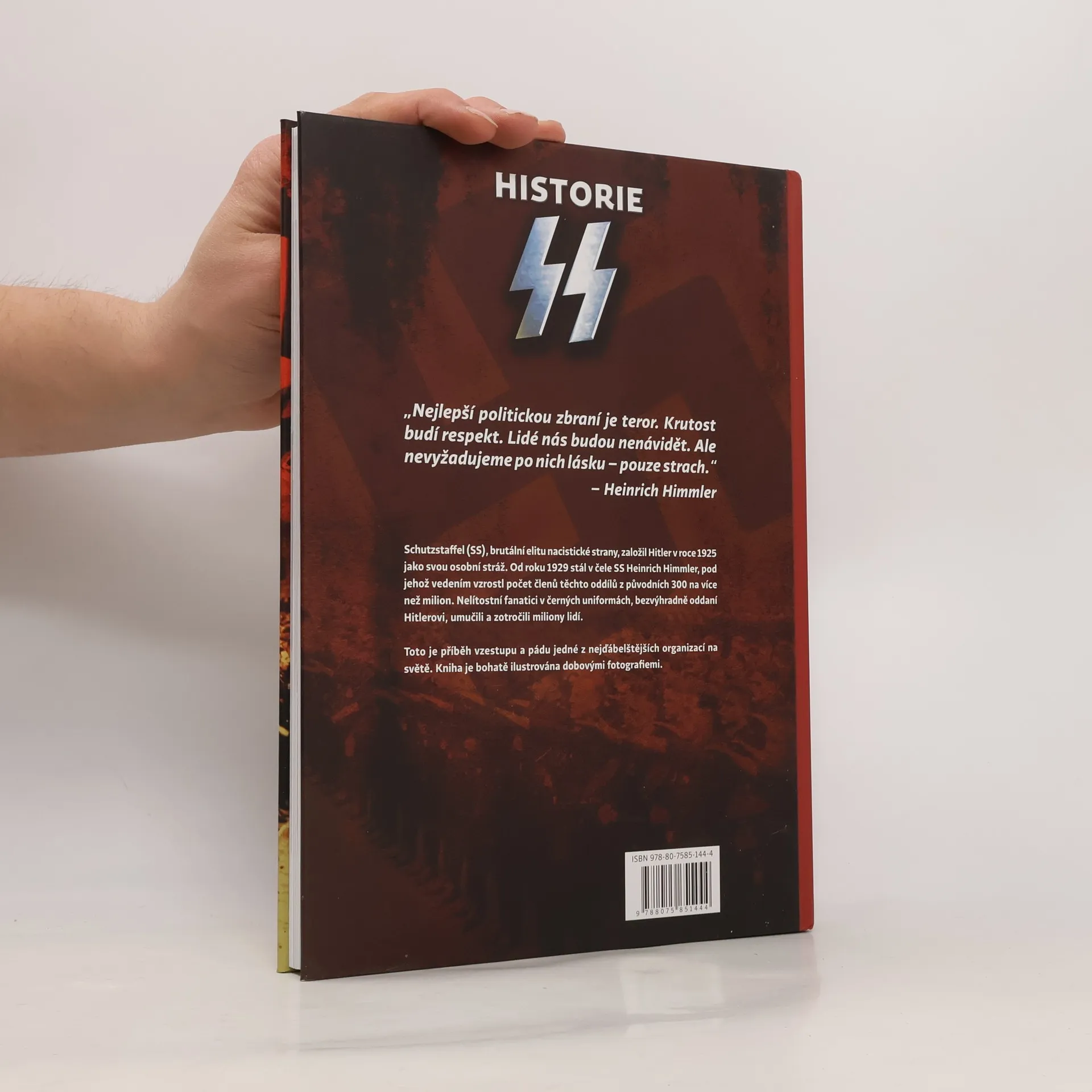 Schutzstaffel neboli SS – brutální elita nacistické strany, založená Hitlerem v roce 1925 jako jeho osobní stráž. Od roku 1929 ji vedl Heinrich Himmler, pod jehož vedením se počet členů zvýšil do roku 1945 z necelých tří set na více než milion.SS se stala páteří nacistického Německa, a ovládala téměř všechny funkce ve státě. Členové SS byli vybíráni nejen za účelem ztělesnění Hitlerovy vize árijské nadřazenosti, ale také posilnění nehynoucí oddanosti Führerovi na všech úrovních německé společnosti. Tito chladnokrevní fanatici v holínkách systematicky vyvražďovali, mučili a uvěznili miliony lidí. Toto je příběh vzestupu a pádu jedné z nejděsivějších organizací v dějinách. „Nejlepší politickou zbraní je strach. Krutost vzbuzuje respekt. Lidé nás mohou nesnášet. Nepotřebujeme jejich přízeň, pouze jejich strach.“ —Heinrich Himmler