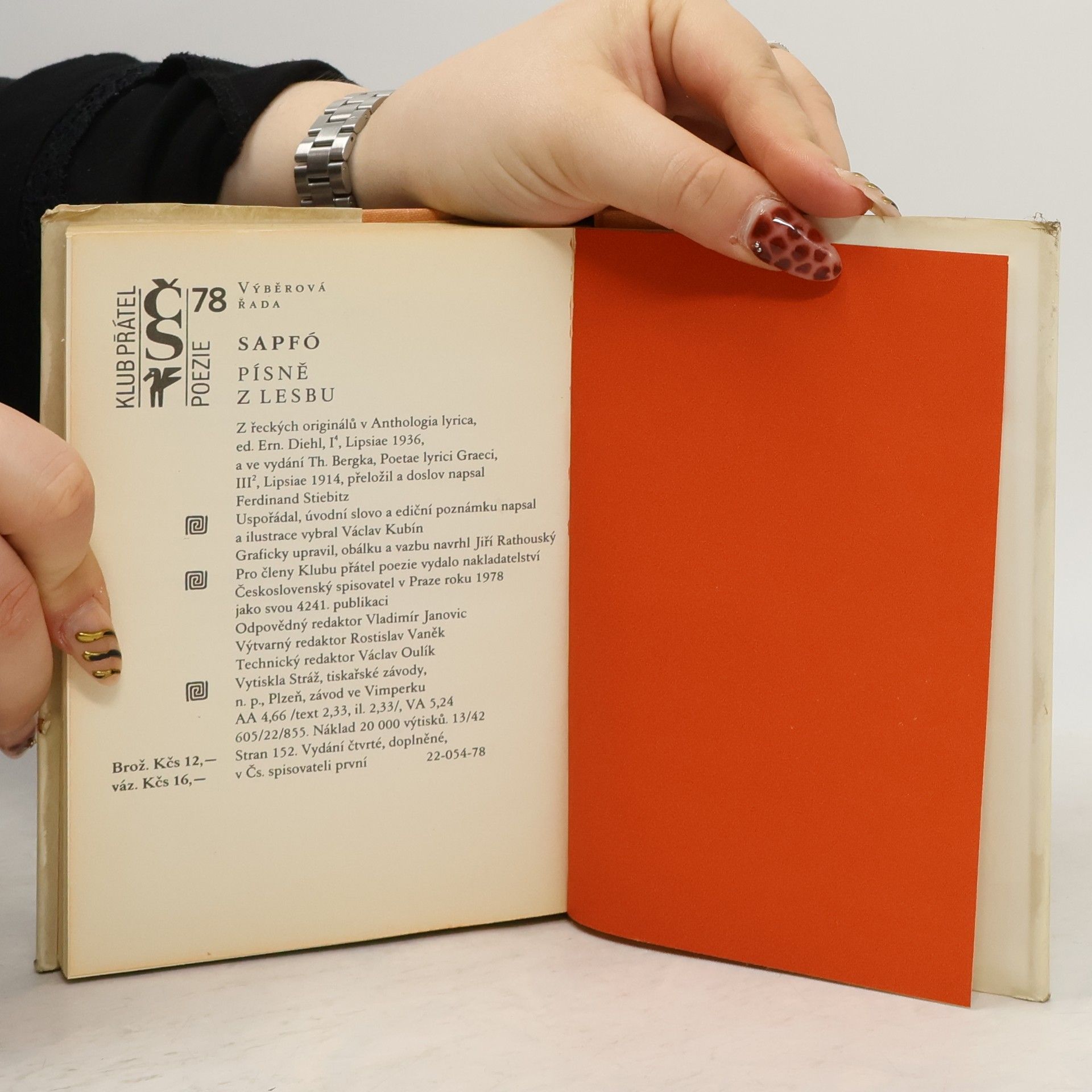 Výběr z řeckých originálů v Anthologia lyrica a Poetae lyrici Graeci zahrnuje zlomky básní (v té době se ovšem básně zpívaly za doprovodu strunných nástrojů – proto Písně z Lesbu), které se zachovaly z díla „desáté múzy“, jak byla Sapfó nazývána – a které překladatel sestavil do kompozičních celků. Sapfó svůj nepříliš rozsáhlý tématický rejstřík nahradila silou básnického procítění a tak ze všech dochovalých antických básníků nejvíce promlouvá k dnešnímu čtenáři. Jak sama říká: „Mne však vpravdě blaženou učinily zlaté Múzy a záviděníhodnou; a až zemru, nezničí zapomnění památku na mne –“ – a nemýlila se.
