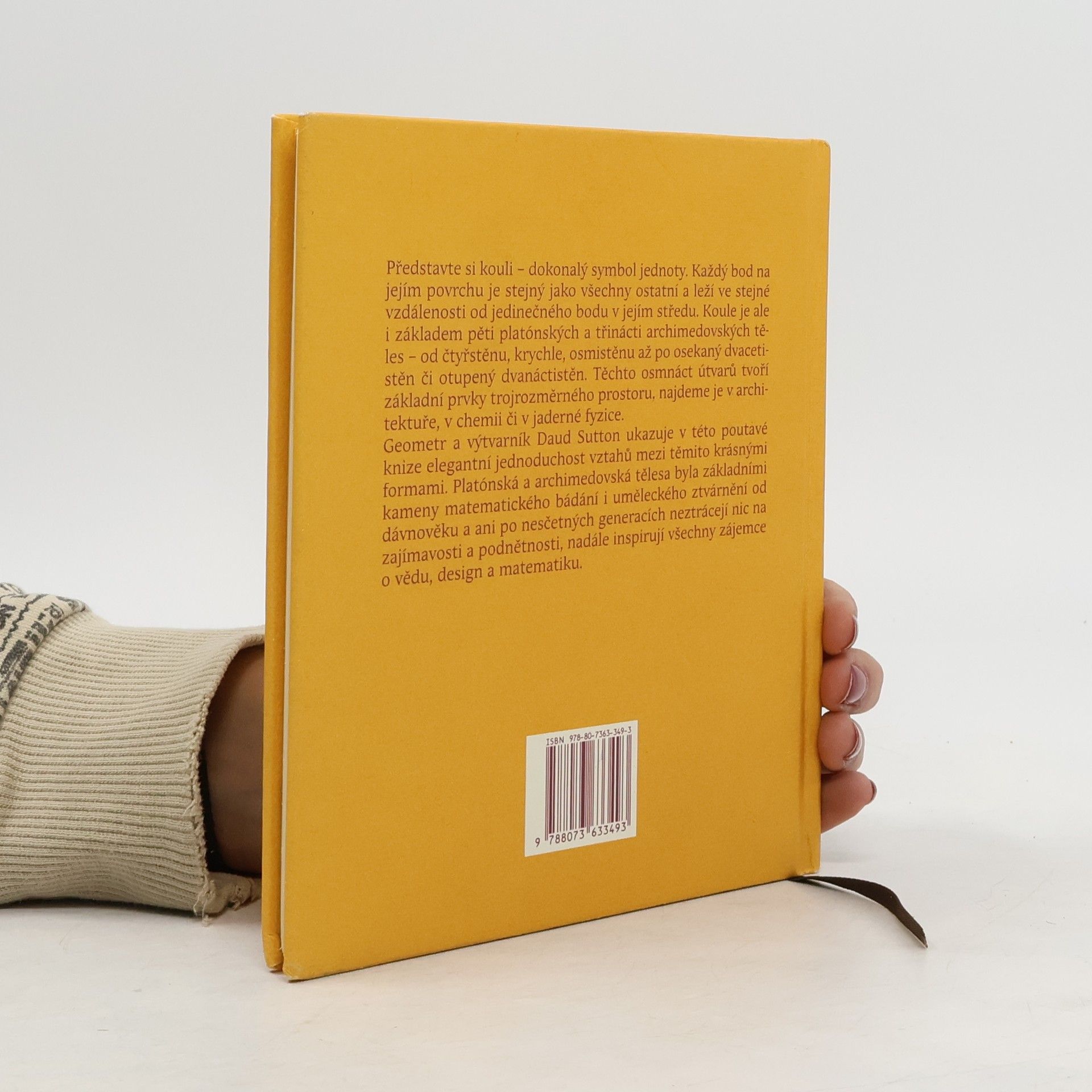 této půvabné knížečce odkrývá geometr a umělec Daud Sutton elegantní jednoduchost vztahů mezi základními geometrickými formami. Podrobně popisuje pět platónských a třináct archimédovských těles. Platónská tělesa tvoří prazáklad energie živlů neboli elementů, které umožňují život. Tyto úhelné kameny matematického a uměleckého poznání již od antiky ovlivňují a inspirují každého, kdo se zajímá o vědu, design a matematiku.