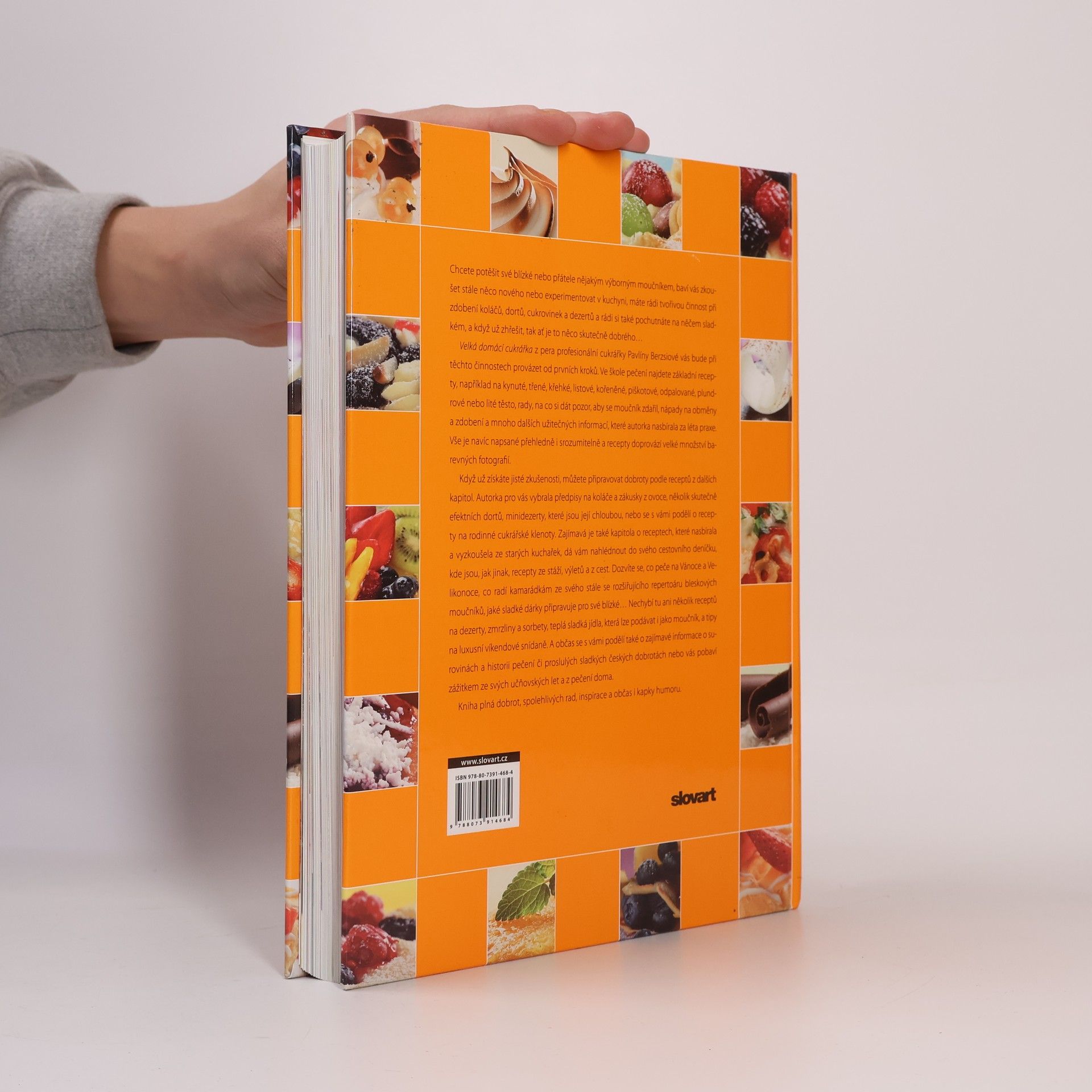 Kuchařka plná receptů na výborné moučníky obsahuje školu pečení pro základní těsta (kynuté, listové, křehké, piškotové atd.), takže si s nimi poradí i začátečníci. Nové poznatky si můžete vyzkoušet na množství receptů, inspirativních pro všechny milovníky sladkostí. Kdo by si nechtěl sám upéct třeba laskonku nebo větrník lepší než z cukrárny? Tematické kapitoly odtajní zapomenuté staročeské speciality či zajímavé recepty nasbírané z cest po světě, představí autorčiny rodinné cukrářské klenoty, recepty, podle nichž ráda peče na Vánoce a Velikonoce. Oblíbené recepty z ovoce, příprava domácí zmrzliny, sladkého dárku pro oslavence i luxusní nedělní snídaně.