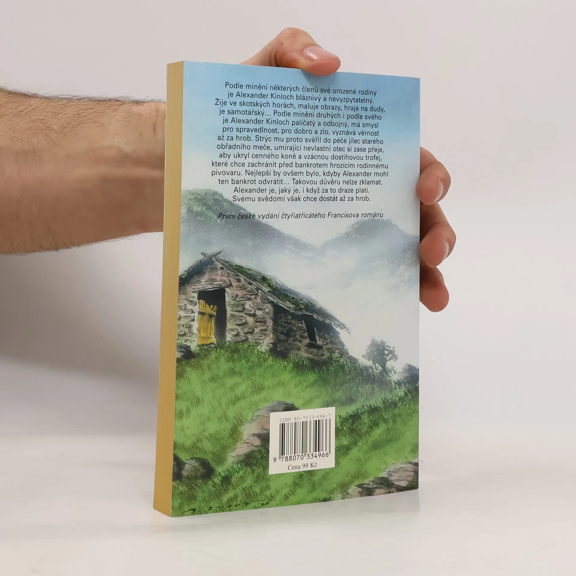 Podle mínění některých členů své urozené rodiny je Alexander Kinloch bláznivý a nevyzpytatelný. Žije ve skotských horách, maluje obrazy, hraje na dudy, je samotářský... Podle mínění druhých i podle svého je Alexander Kinloch paličatý a odbojný, má smysl pro spravedlnost, pro dobro a zlo, vyznává věrnost až za hrob. Strýc mu proto svěřil do péče jílec starého obřadního meče, umírající nevlastní otec si zase přeje, aby ukryl cenného koně a vzácnou dostihovou trofej, které chce zachránit před bankrotem hrozícím rodinnému pivovatu. Nejlepší by ovšem bylo, kdyby Alexander mohl ten bankrot odvrátit... Takovou důvěru nelze zklamat, Alexander je, jeký je, i když za to draze platí. Svému svědomí však chce dostát až za hrob.